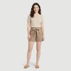 Economia de R$ 12,00A bermuda feminina Viva Casual em bege é uma opção prática para compor produções versáteis. A cintura com passantes e a faixa para amarração frontal permitem um ajuste confortável e um visual atual.