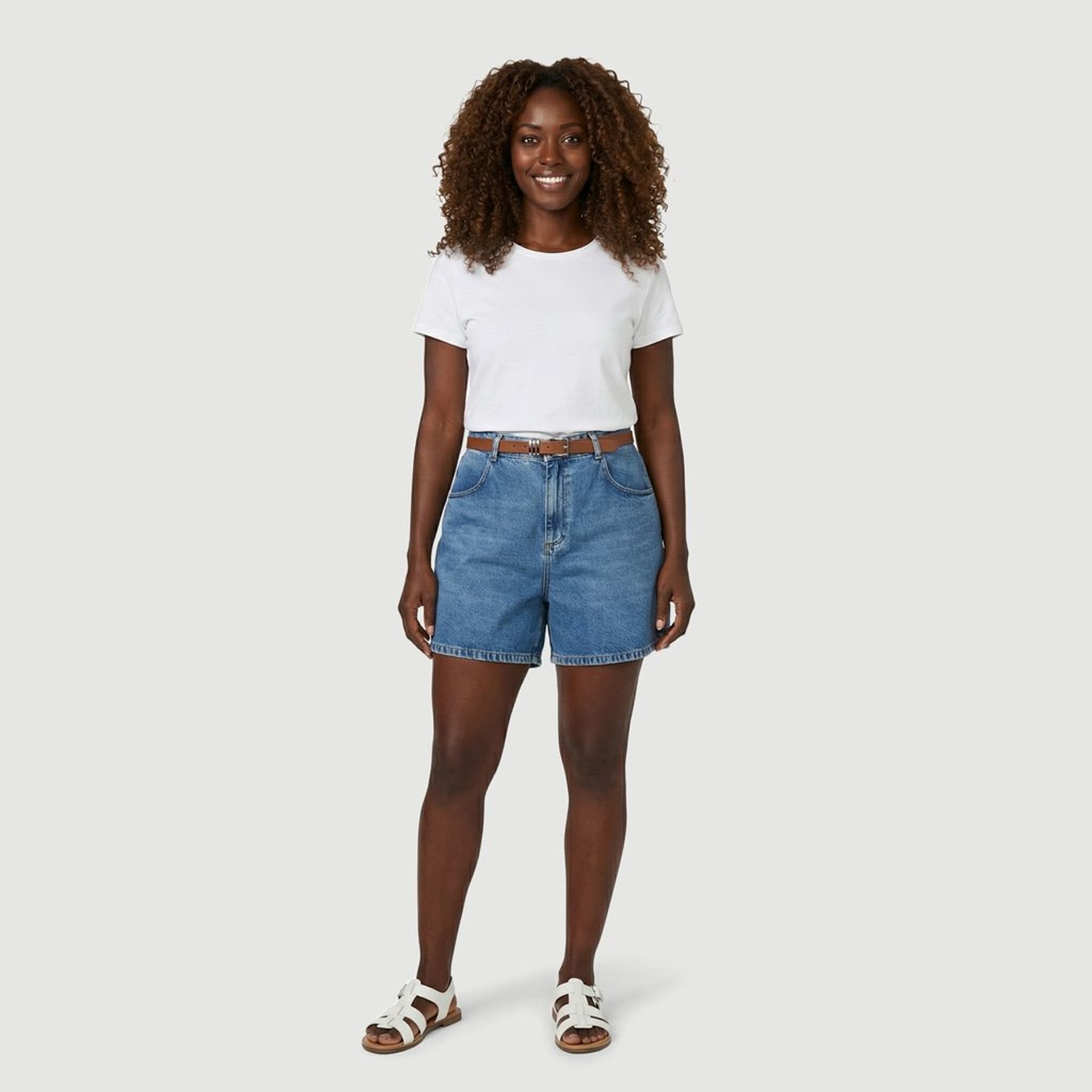 Bermuda Jeans Feminina Reta Cintura Alta Lisa Azul Médio - Ink