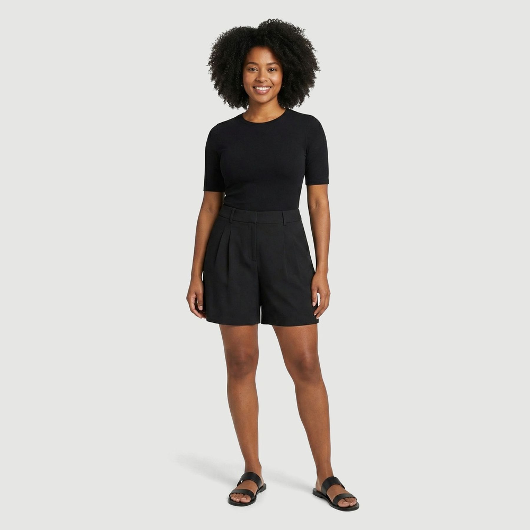 Bermuda Feminina Urbano Sem Cós com Pregas Lisa Preta - Urbano