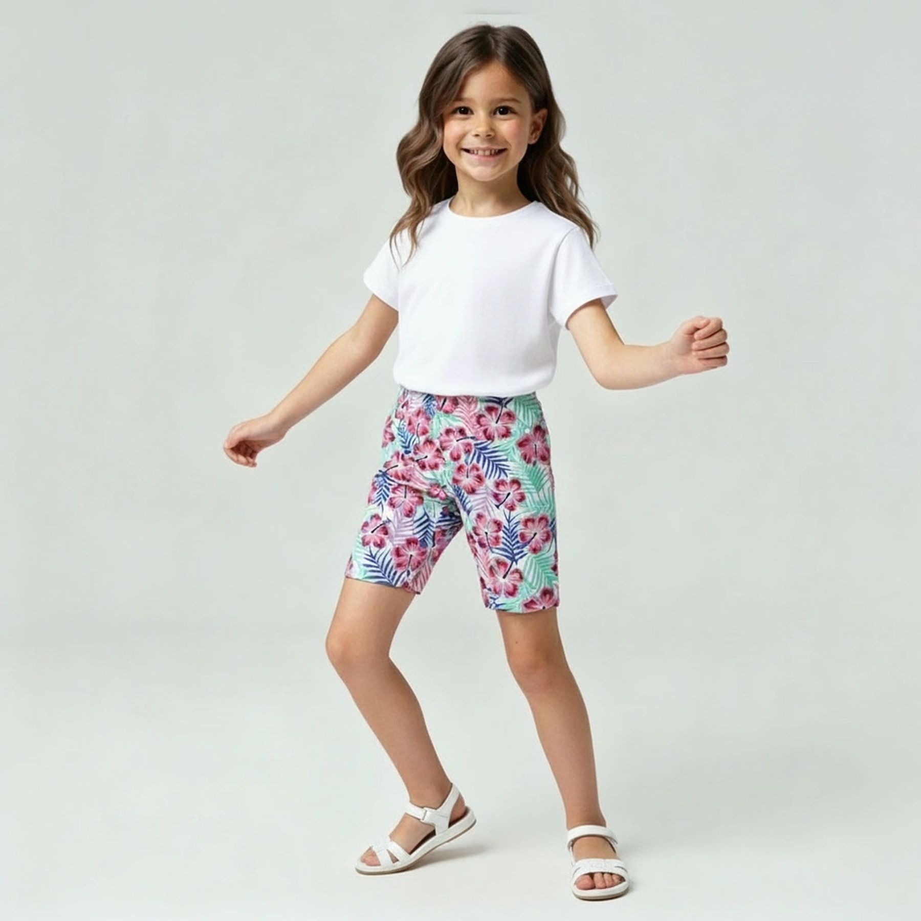 Bermuda Infantil Feminina Ciclista Estampada Floral Colorido em Malha - YEAPP