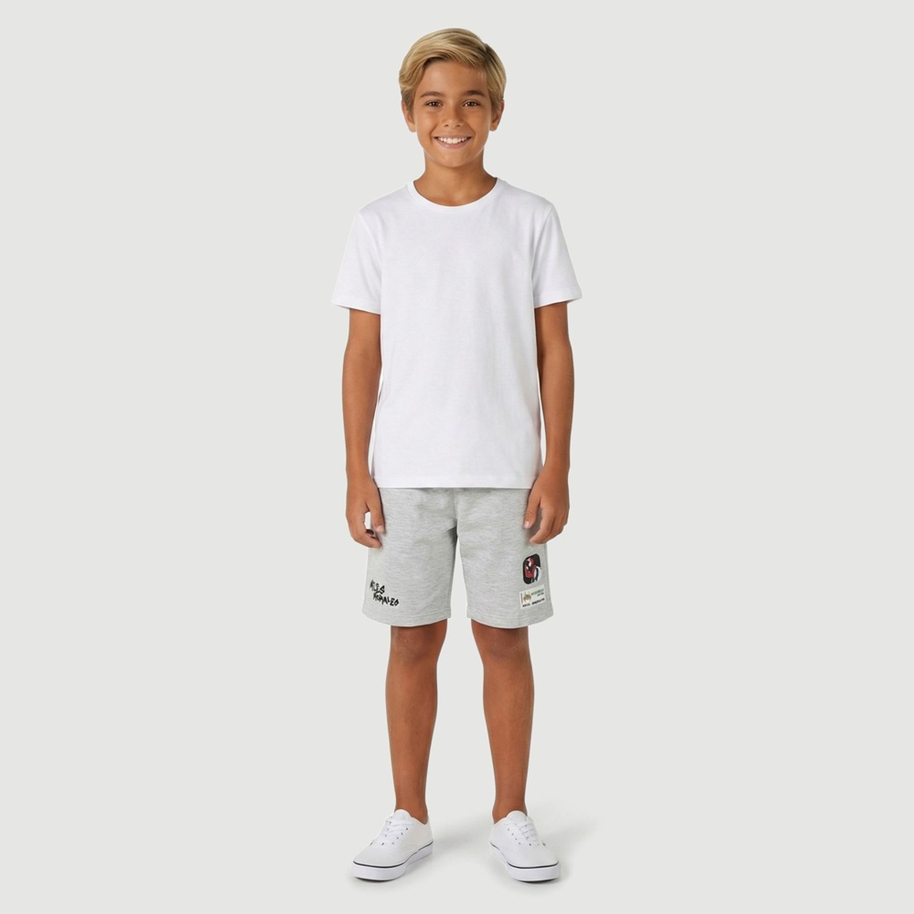 Economia de R$ 4,60A bermuda masculina Marvel em moletinho com predominância de algodão é ideal para montar um visual urbano com praticidade. Na cor cinza, traz temática do Spider-Man (Miles Morales) com inscrição “Miles Morales”, detalhe “Brooklyn” e aplicações tipo patch na perna.