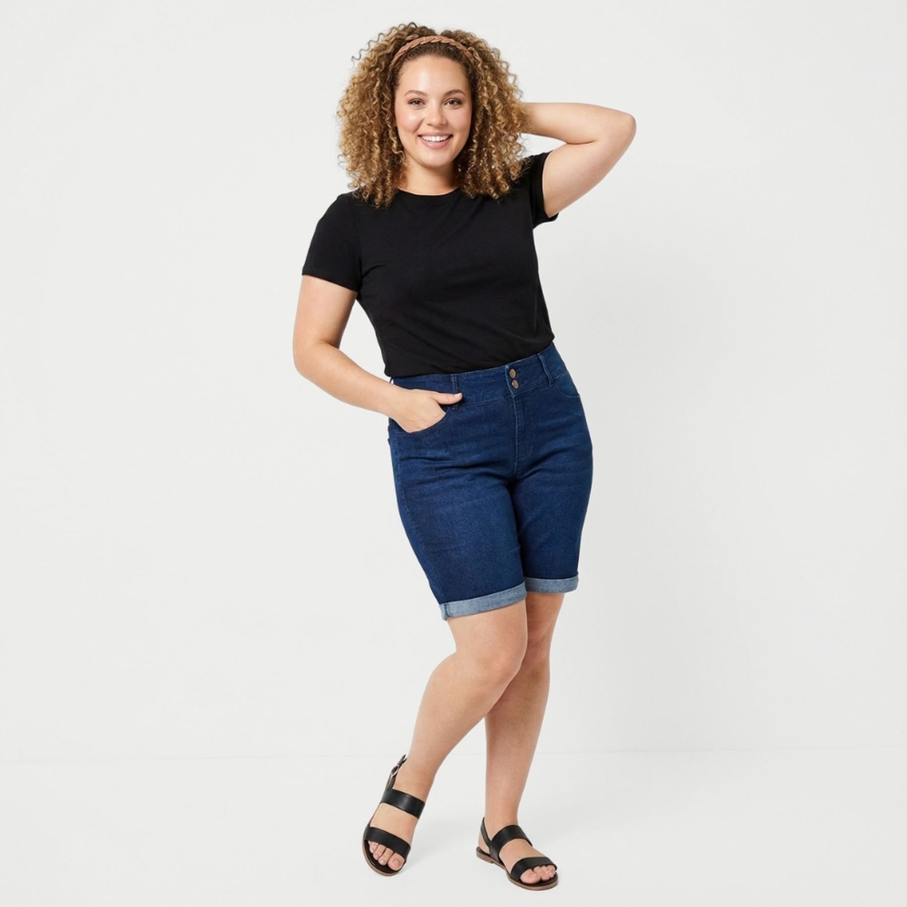 Bermuda Feminina Meia Coxa Mom Lisa Preta - Biotipo