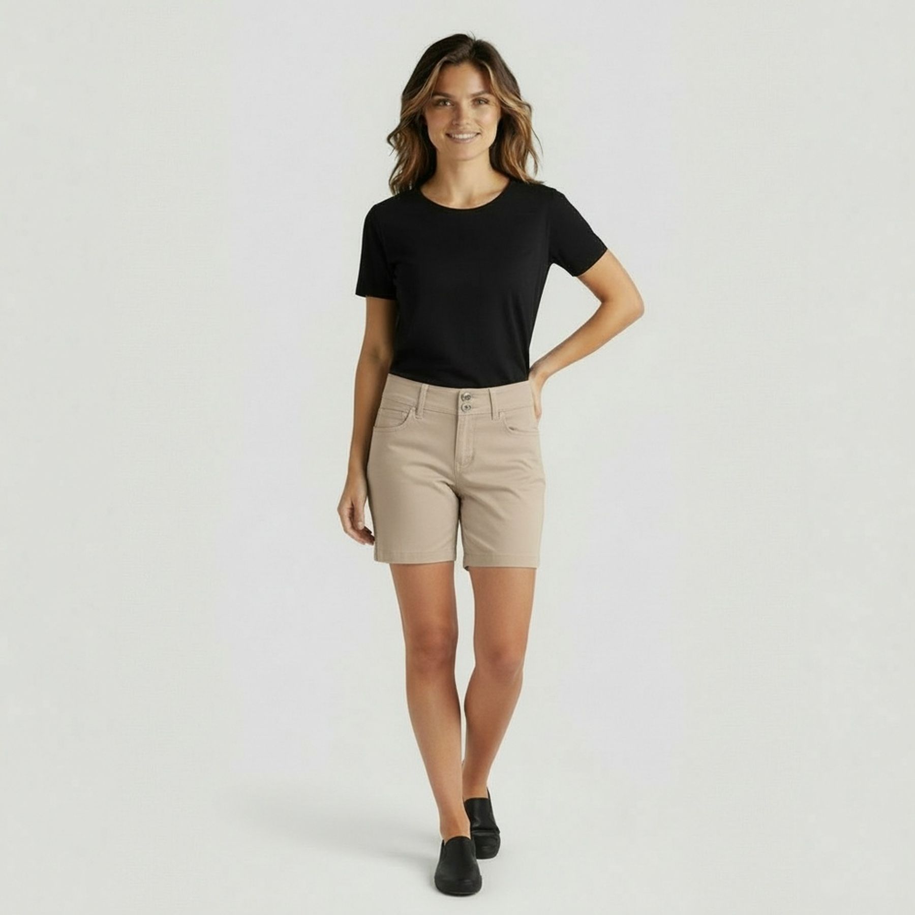 Bermuda Jorts Feminina Reta Em Sarja Dianna Preto