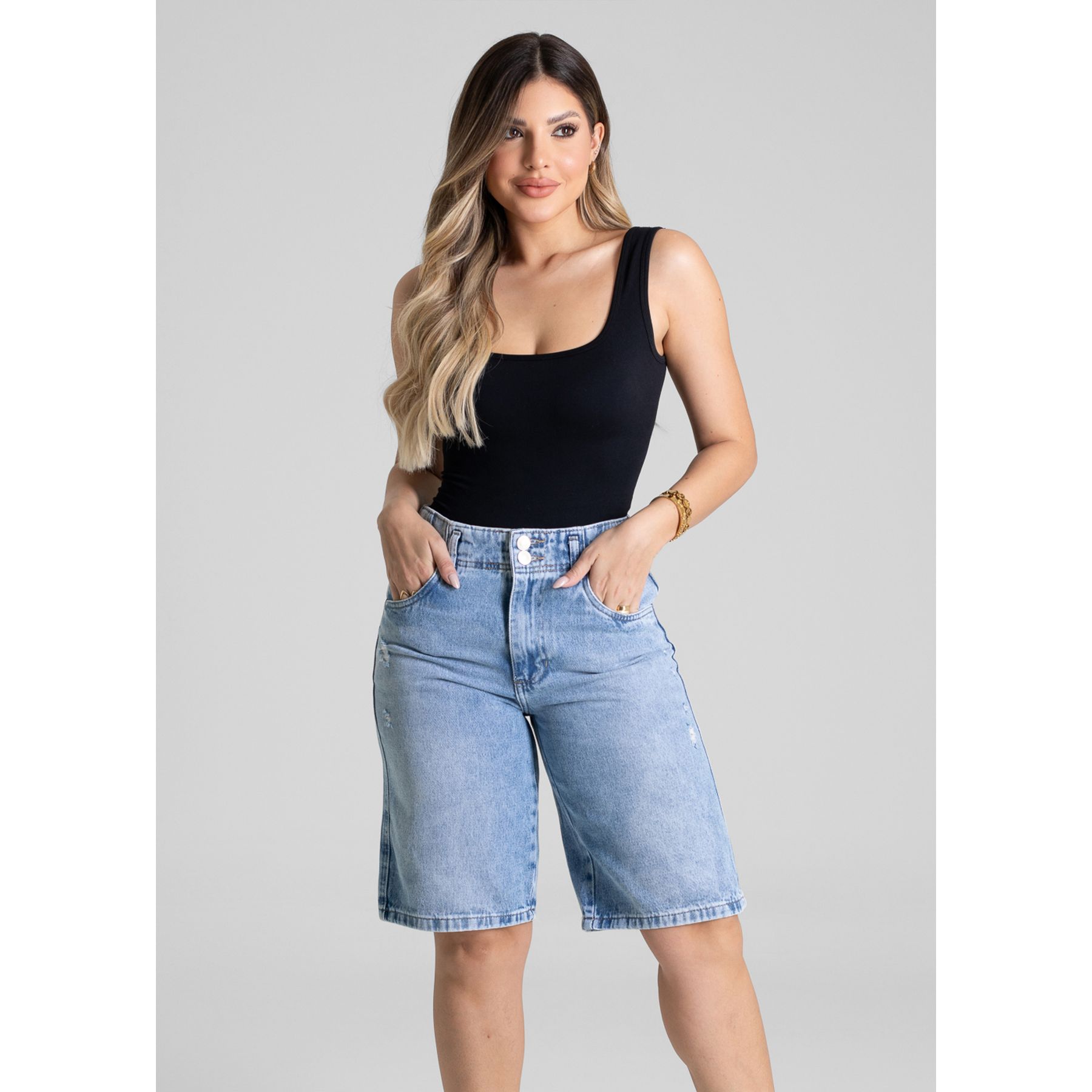 Bermuda Feminina Casual cós elástico Azul médio - Viva Casual