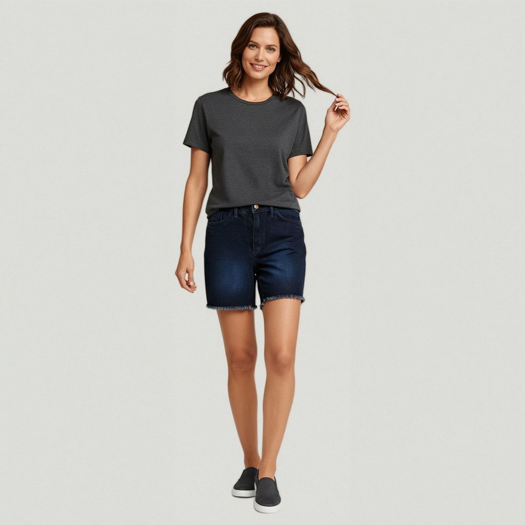Bermuda Jeans Feminina Reta Cintura Alta Lisa Azul Médio - Ink