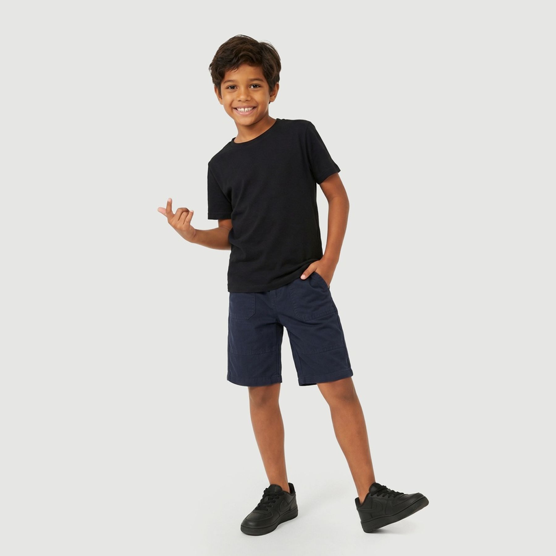 Economia de R$ 8,00Bermuda infantil Ink em sarja lisa na cor azul marinho, ideal para acompanhar a rotina com praticidade. O cós fixo com passantes ajuda no ajuste, e o fechamento por botão com zíper facilita ao vestir. Os bolsos frontais grandes aplicados reforçam o visual utilitário e deixam a peça ainda mais funcional. Confeccionada em 100% algodão, é versátil para combinar com camisetas, polos e tênis.