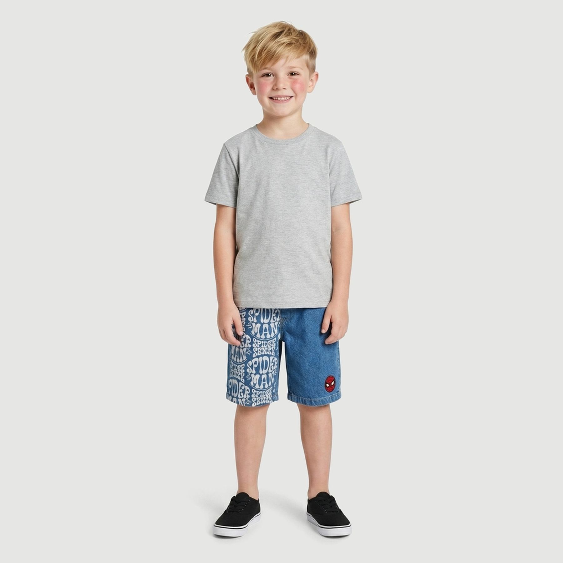 Economia de R$ 13,00A bermuda jeans masculina Marvel Spider-Man é ideal para compor looks urbanos com praticidade. Confeccionada em 100% algodão, oferece toque confortável e visual encorpado, além de cós elástico que facilita o ajuste.