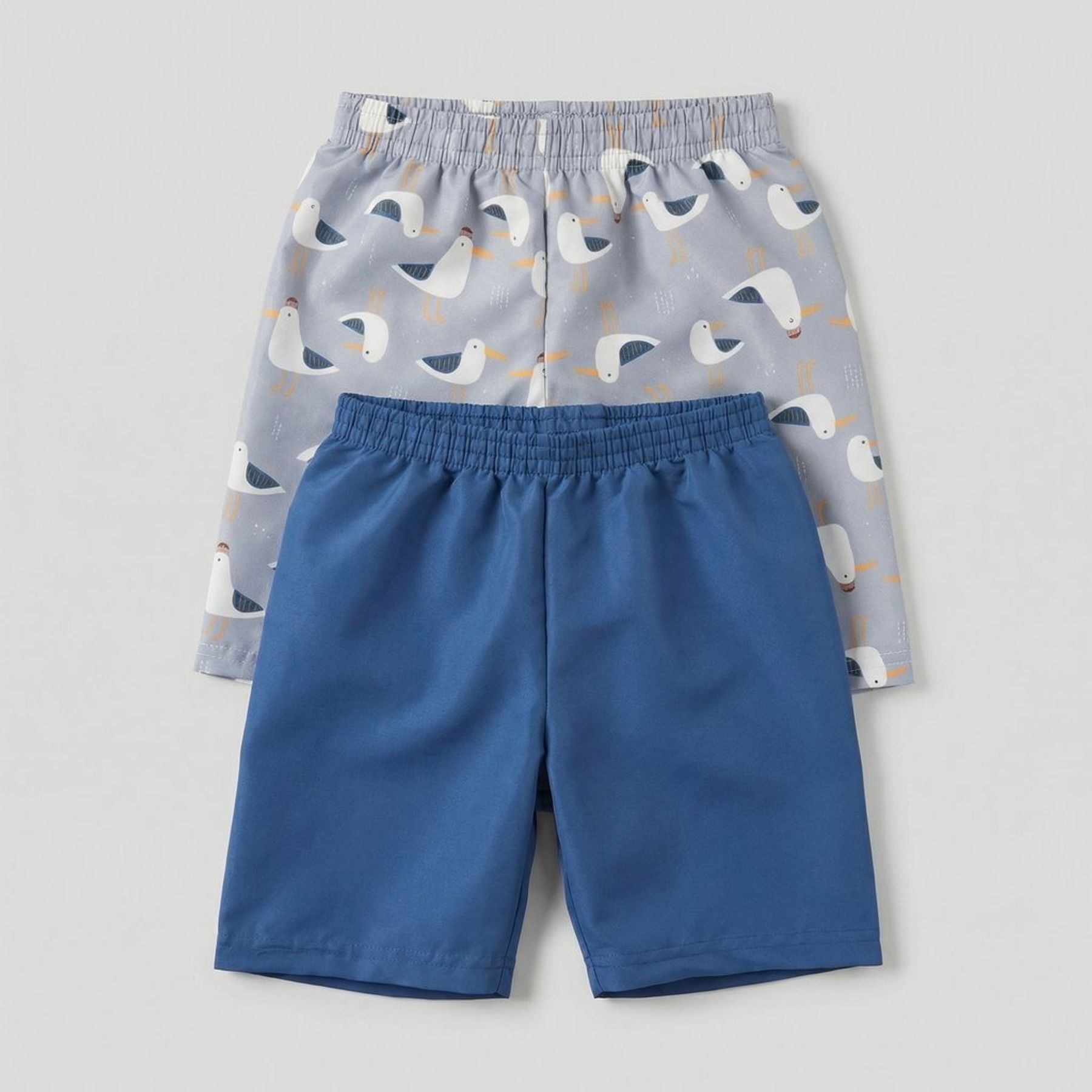 Economia de R$ 4,00O kit com 2 bermudas infantil Toys & Kids é ideal para acompanhar os meninos em passeios e momentos de diversão. São duas opções práticas: uma bermuda azul lisa e outra cinza com estampa de gaivotas, trazendo um visual leve e atual.