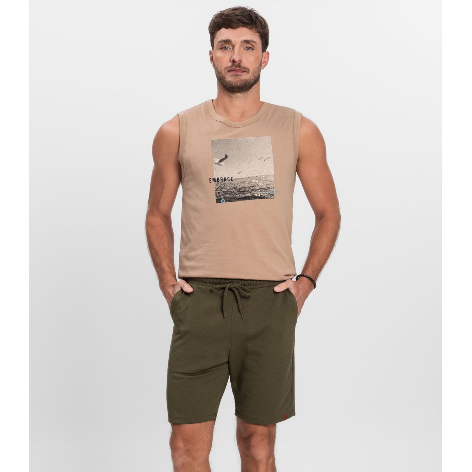 Bermuda Masculina Sarja Cargo Com Elástico Shift Bege