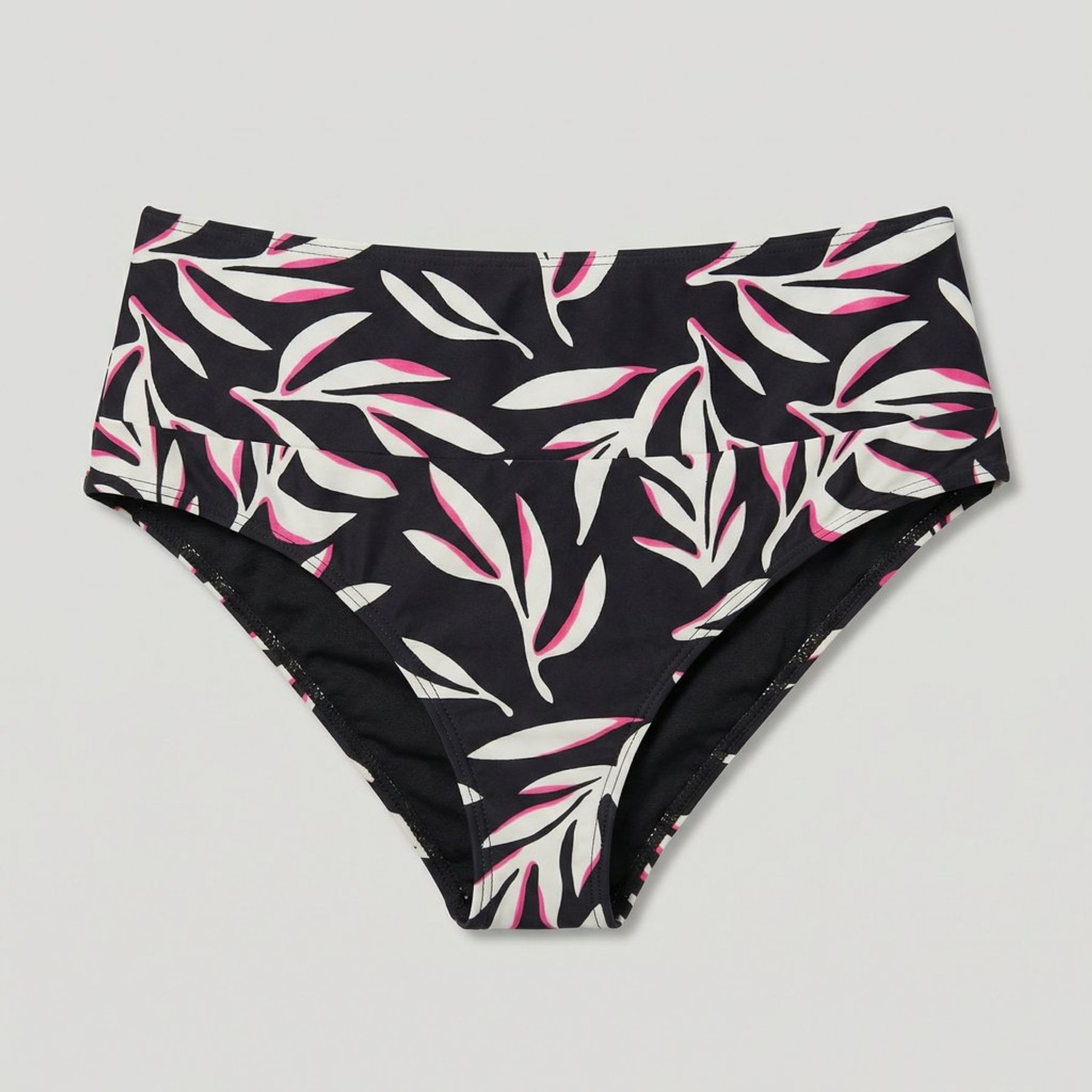 Economia de R$ 34,00A calcinha de biquíni feminina Viva Praia tem cintura alta e cós largo, oferecendo melhor ajuste ao corpo e mais firmeza para aproveitar momentos na praia ou na piscina. A estampa floral com folhagens em contraste sobre fundo preto traz um visual tropical marcante.