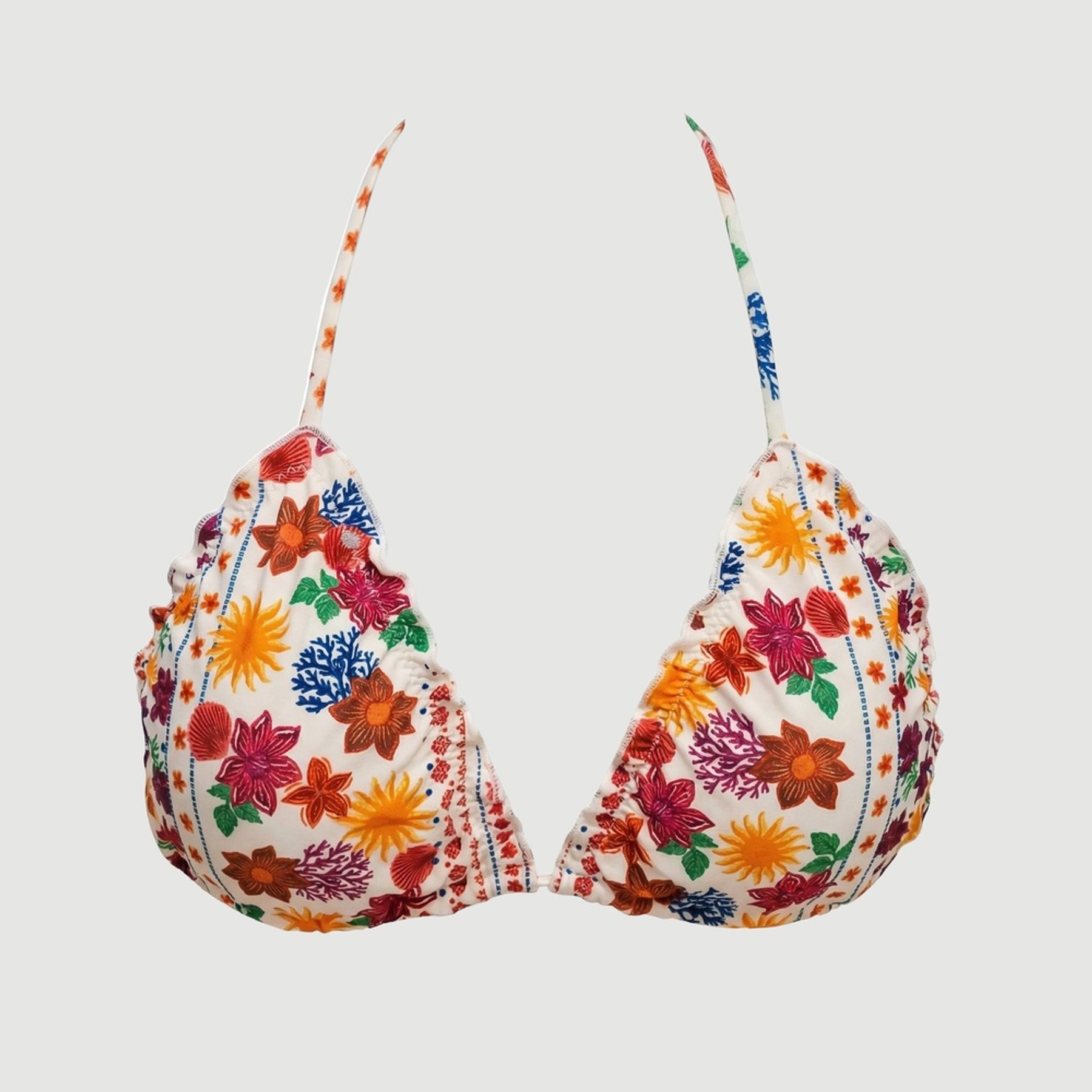 Economia de R$ 14,00O Top de Biquíni Cortininha Frufru Viva praia traz estampa floral vibrante para um visual alegre na praia ou na piscina. O modelo conta com bojos triangulares e detalhe de frufru nas bordas, além de amarração no pescoço para ajuste seguro. Confeccionado em tecido misto com predominância de poliéster e elastano, oferece toque leve e secagem rápida.