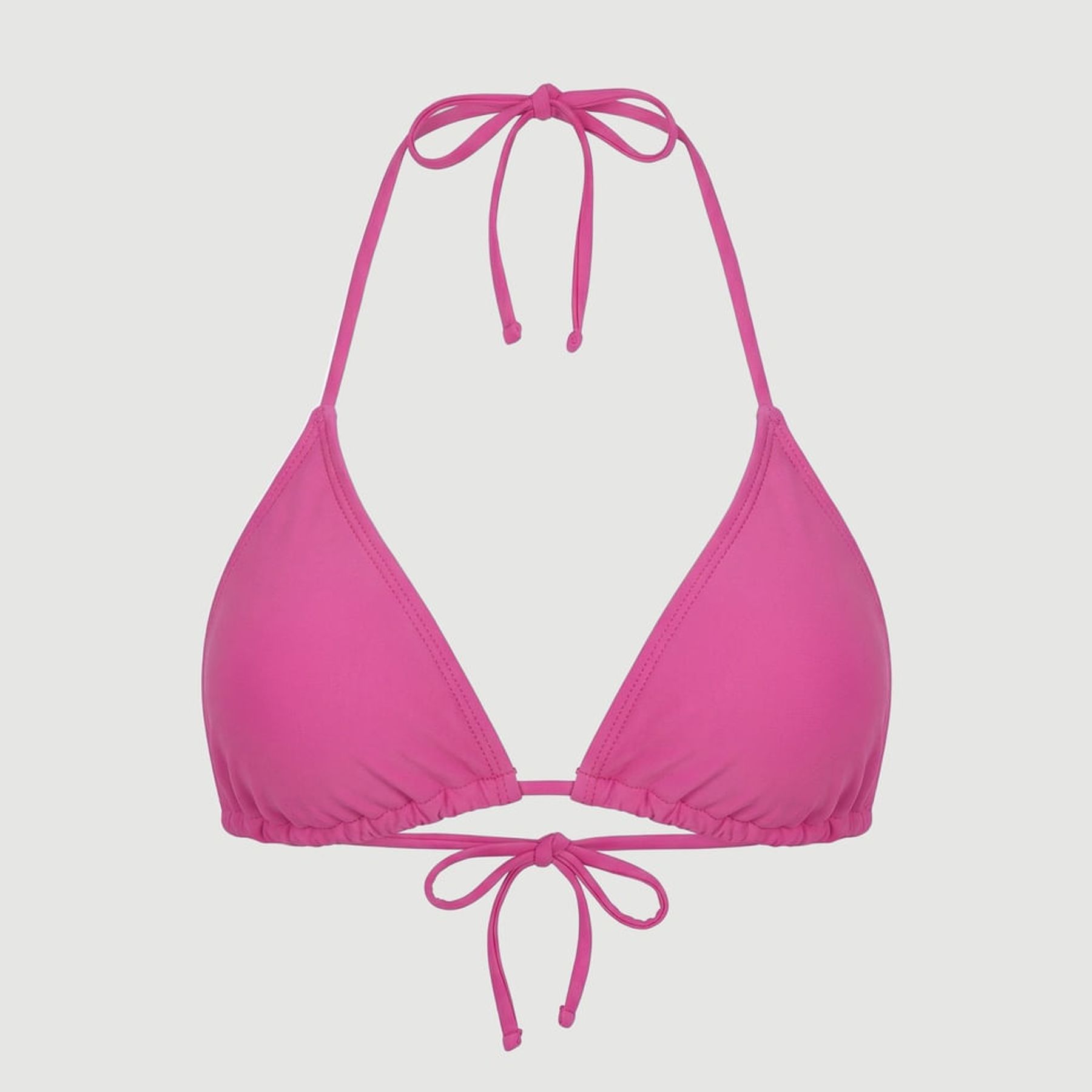 Economia de R$ 5,00O top de biquíni cortininha liso rosa é uma opção prática para compor looks de praia. O modelo tem bojo triangular, alças finas para amarração no pescoço e detalhe franzido na base, com acabamento de costura aparente nas bordas. Confeccionado com predominância de poliamida e elastano, oferece toque macio e boa elasticidade para acompanhar os movimentos.