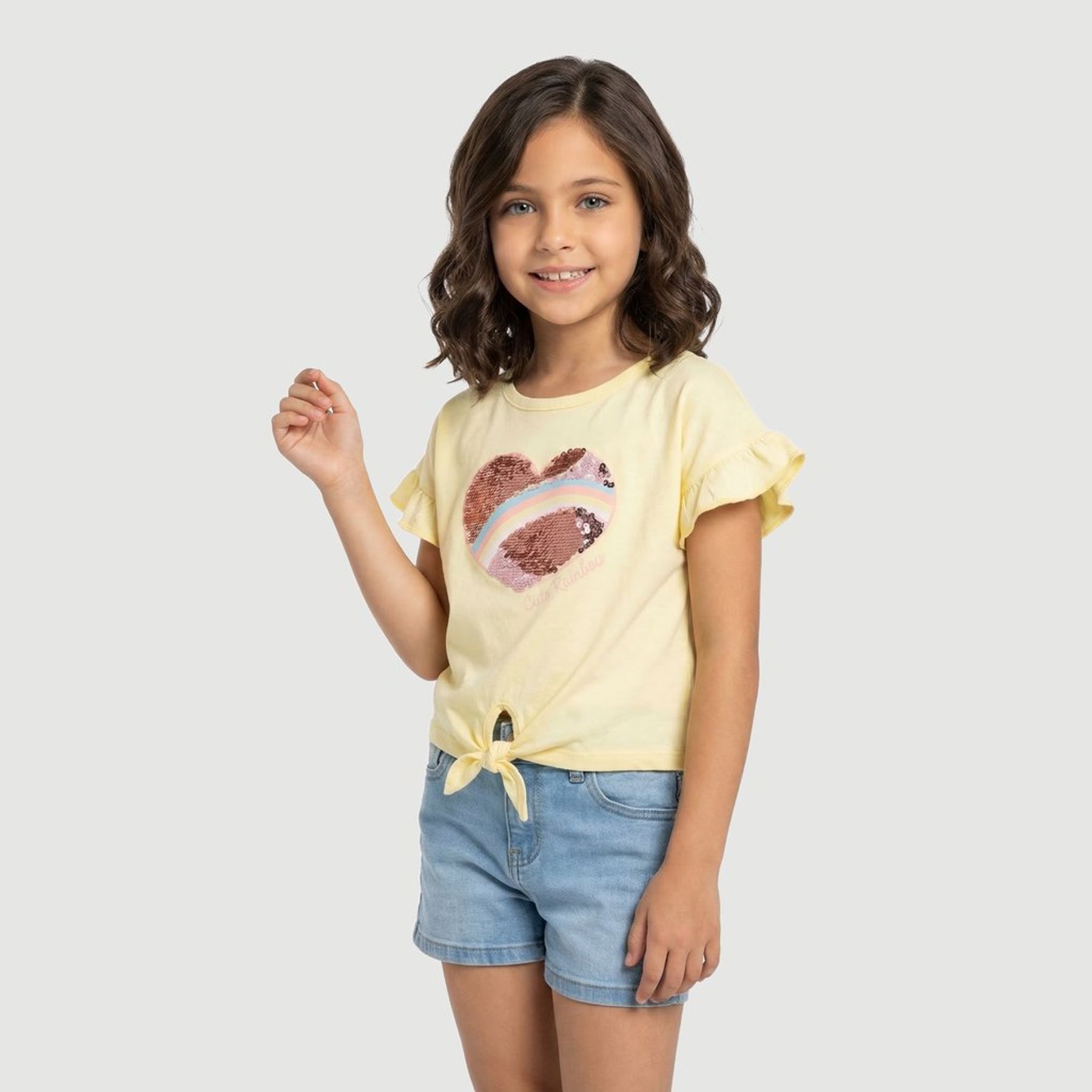 Conjunto Infantil Feminino Blusa e Short Select Amarelo