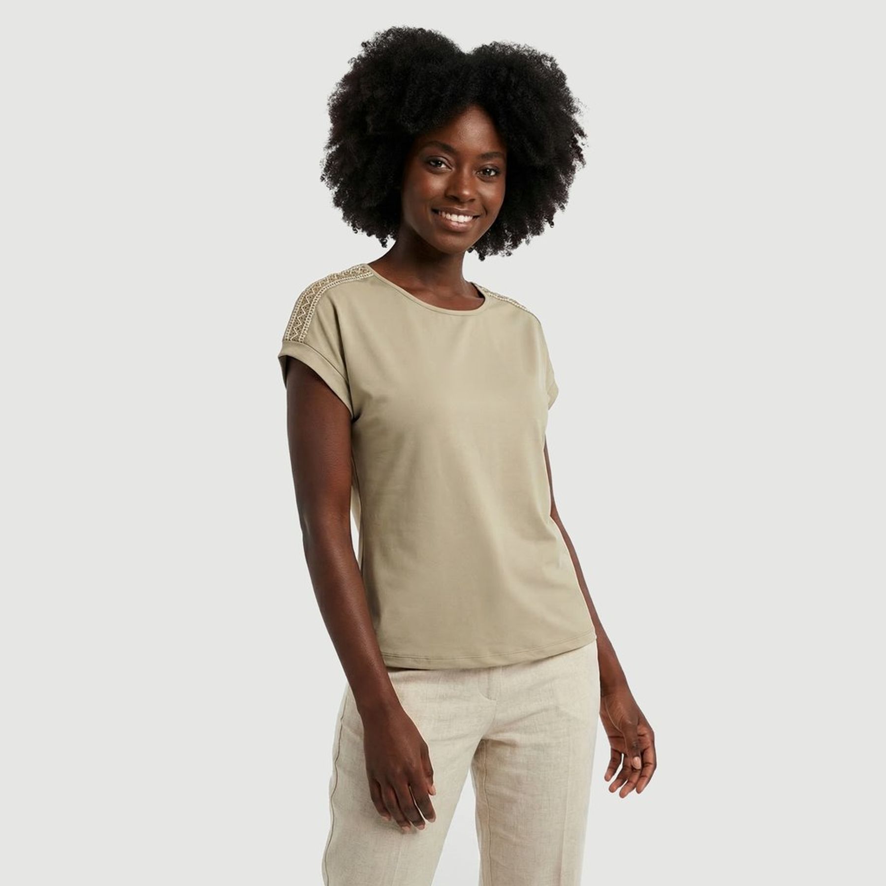 Blusa Viscose Listras manga curta Feminino Endless Bege