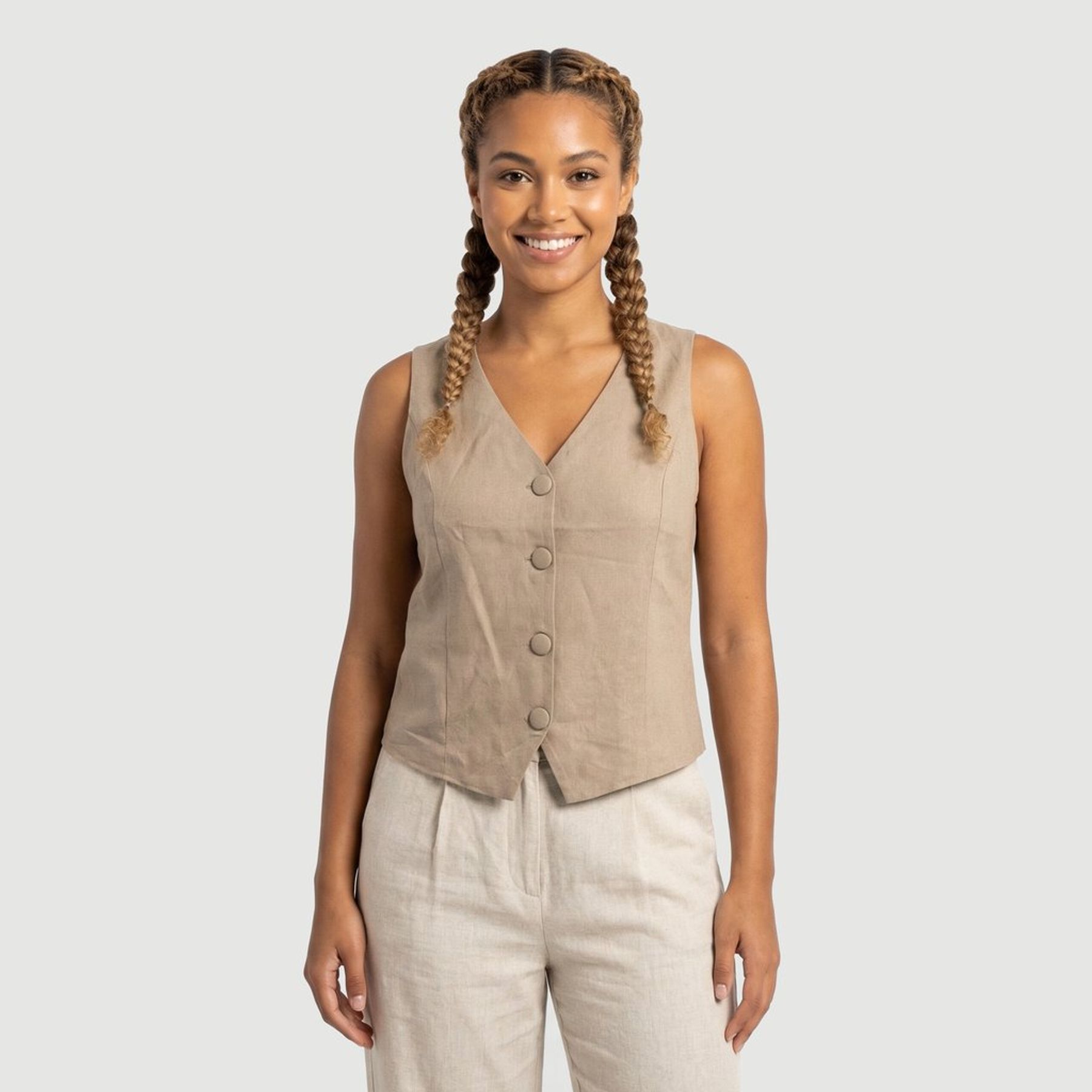 Blusa Viscose Listras manga curta Feminino Endless Bege