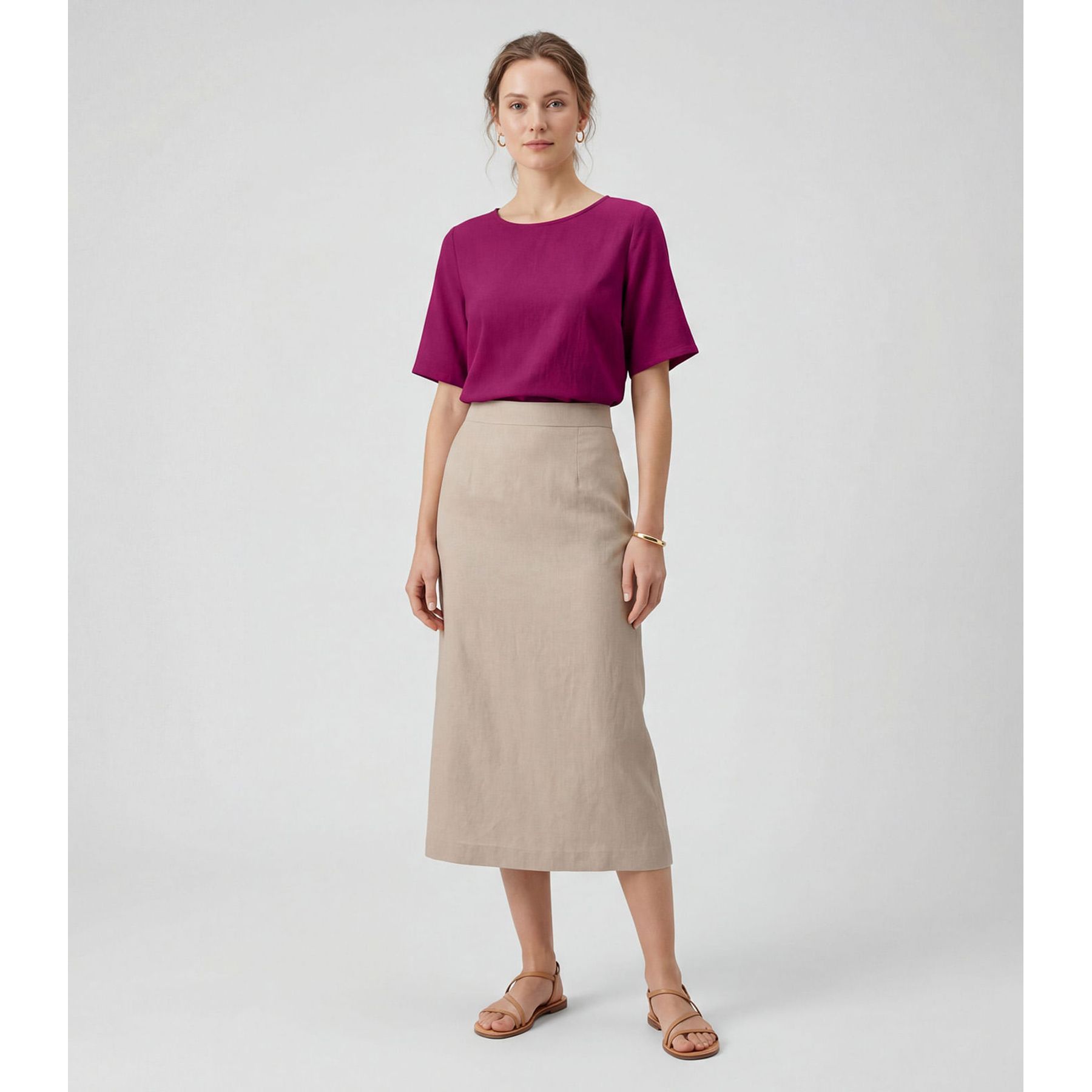 Blusa Feminina Manga Curta Infinita Cor Bege