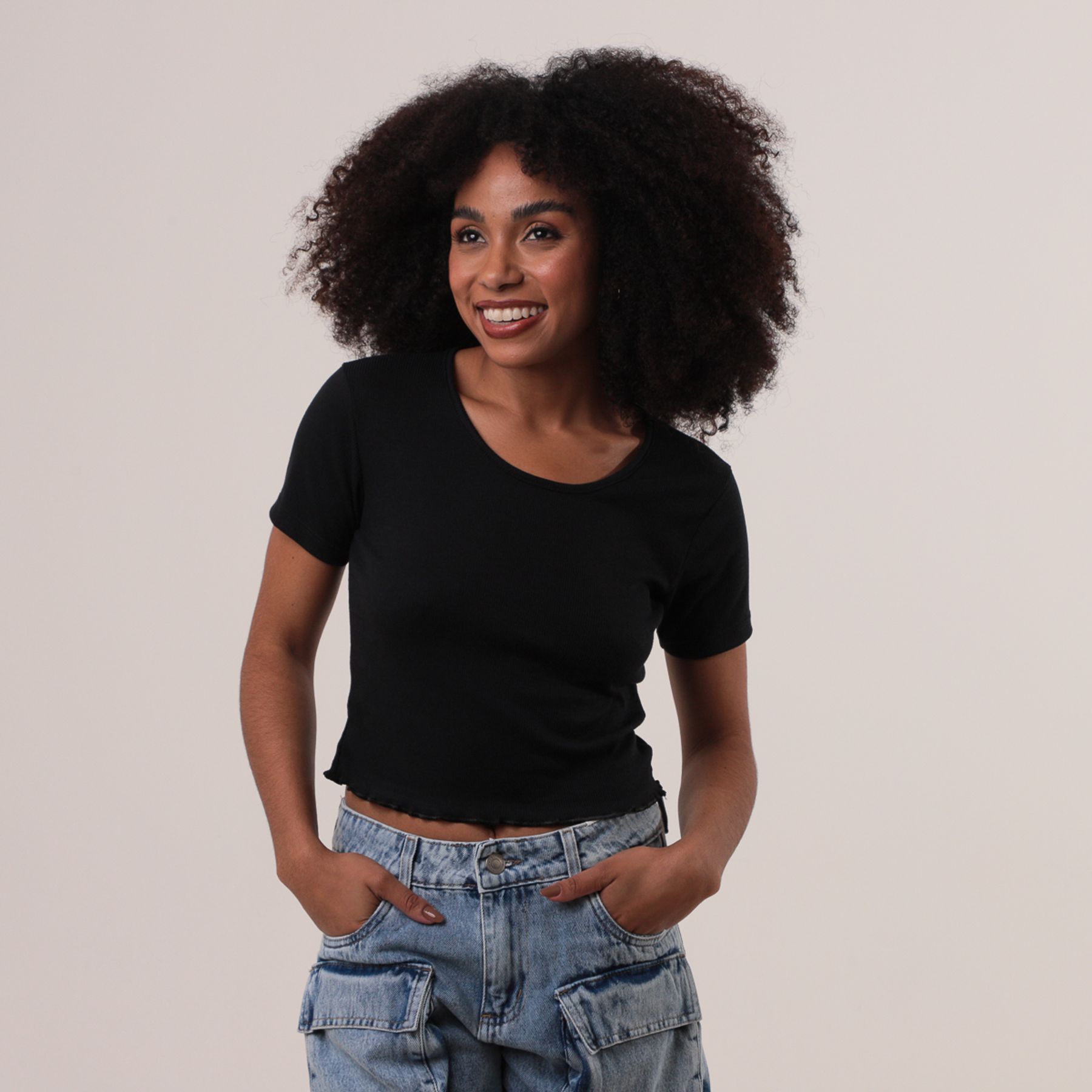 Blusa Feminina Manga Curta Infinita Cor Preto
