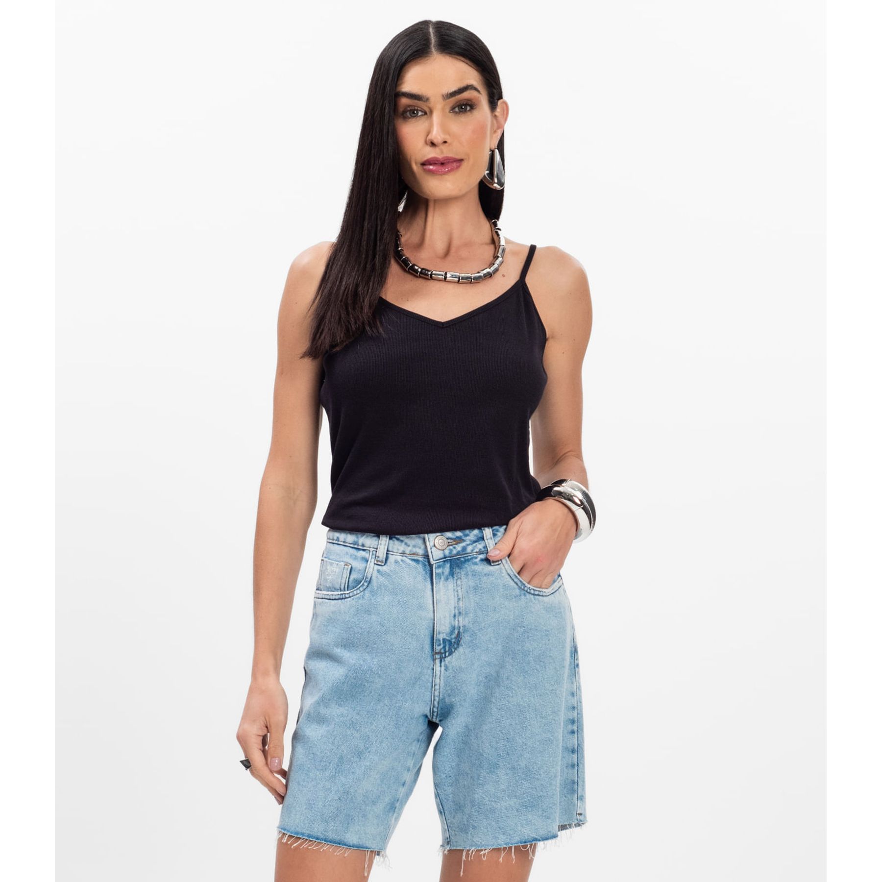 Blusa Cropped Feminina Sem Manga Preta - Viva Basico