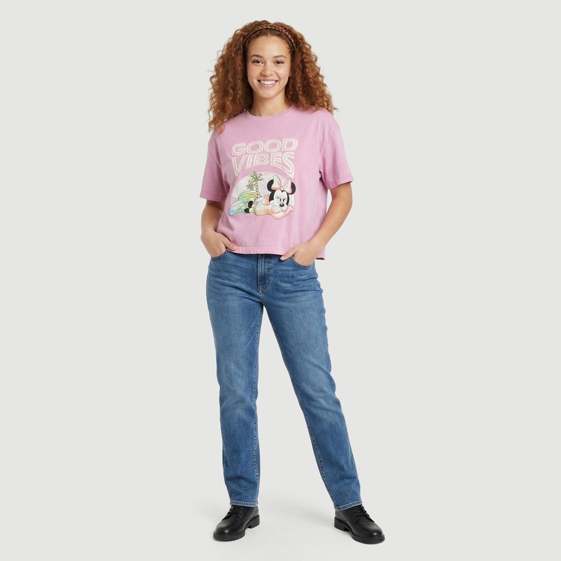 Economia de R$ 8,00A blusa feminina babylook Dpvc Disney é uma peça versátil para compor produções casuais com praticidade. Confeccionada em malha 100% algodão, oferece toque macio e respirabilidade, ideal para a rotina.