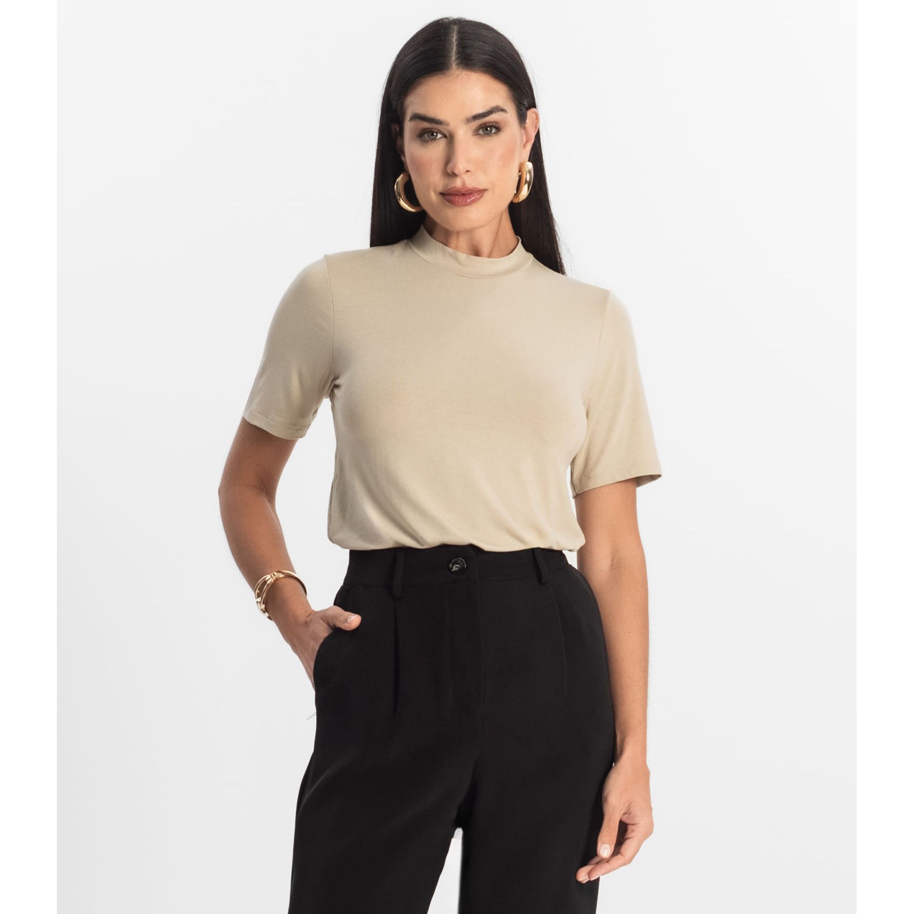 Blusa Feminina Manga Curta Infinita Cor Bege