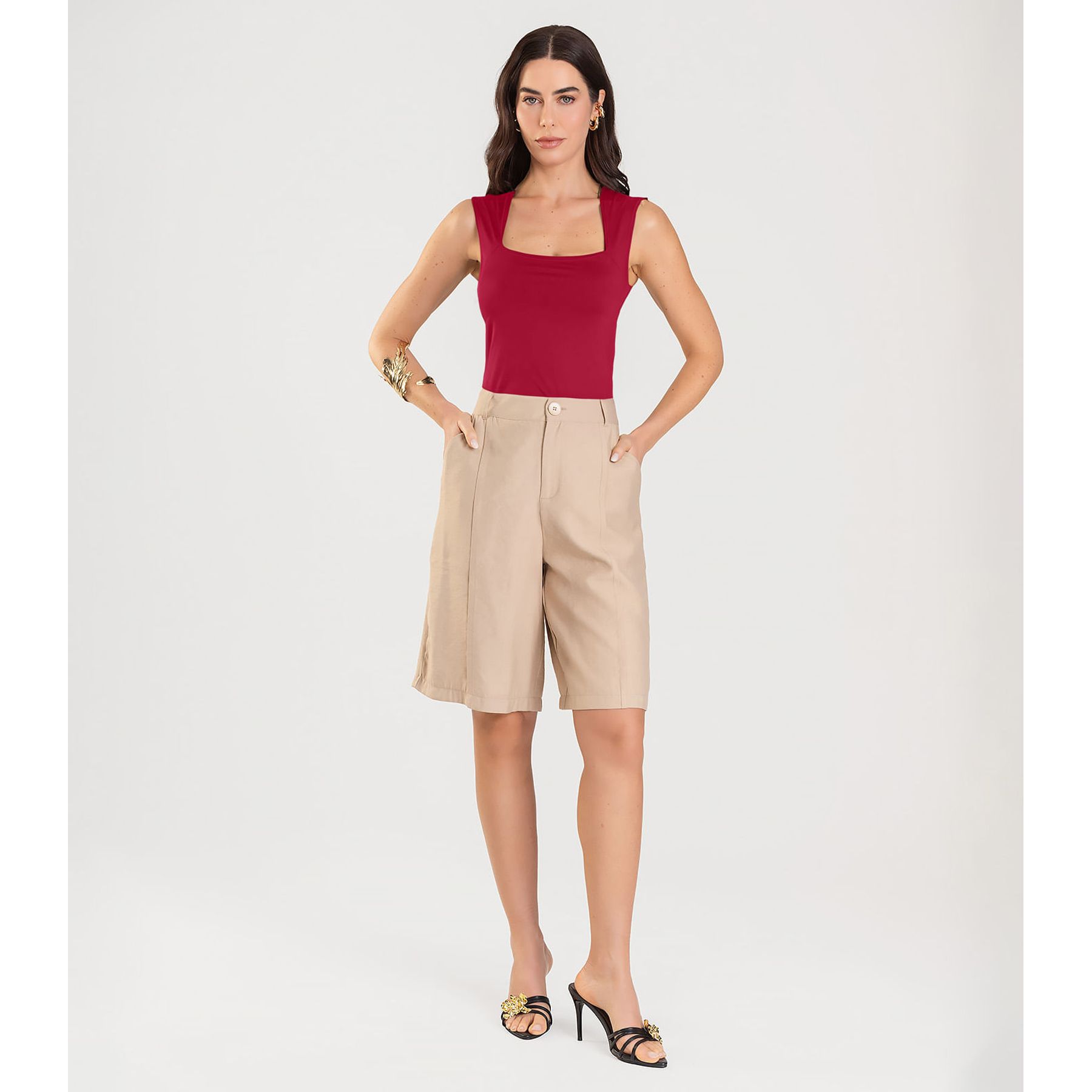 Conjunto Regata com Shorts Feminino Endless Bege