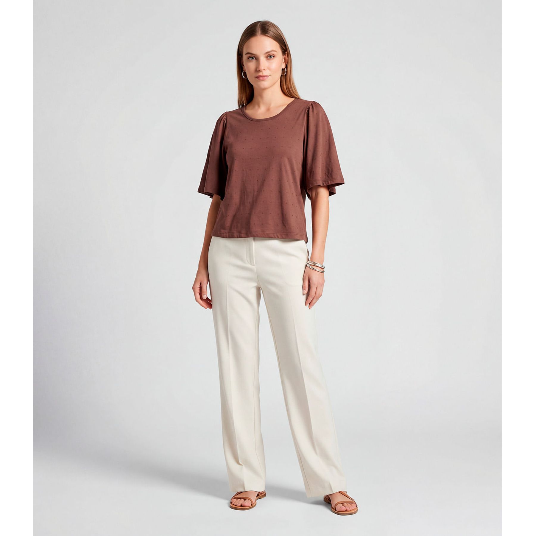 Blusa Feminina Manga Curta Infinita Cor Bege