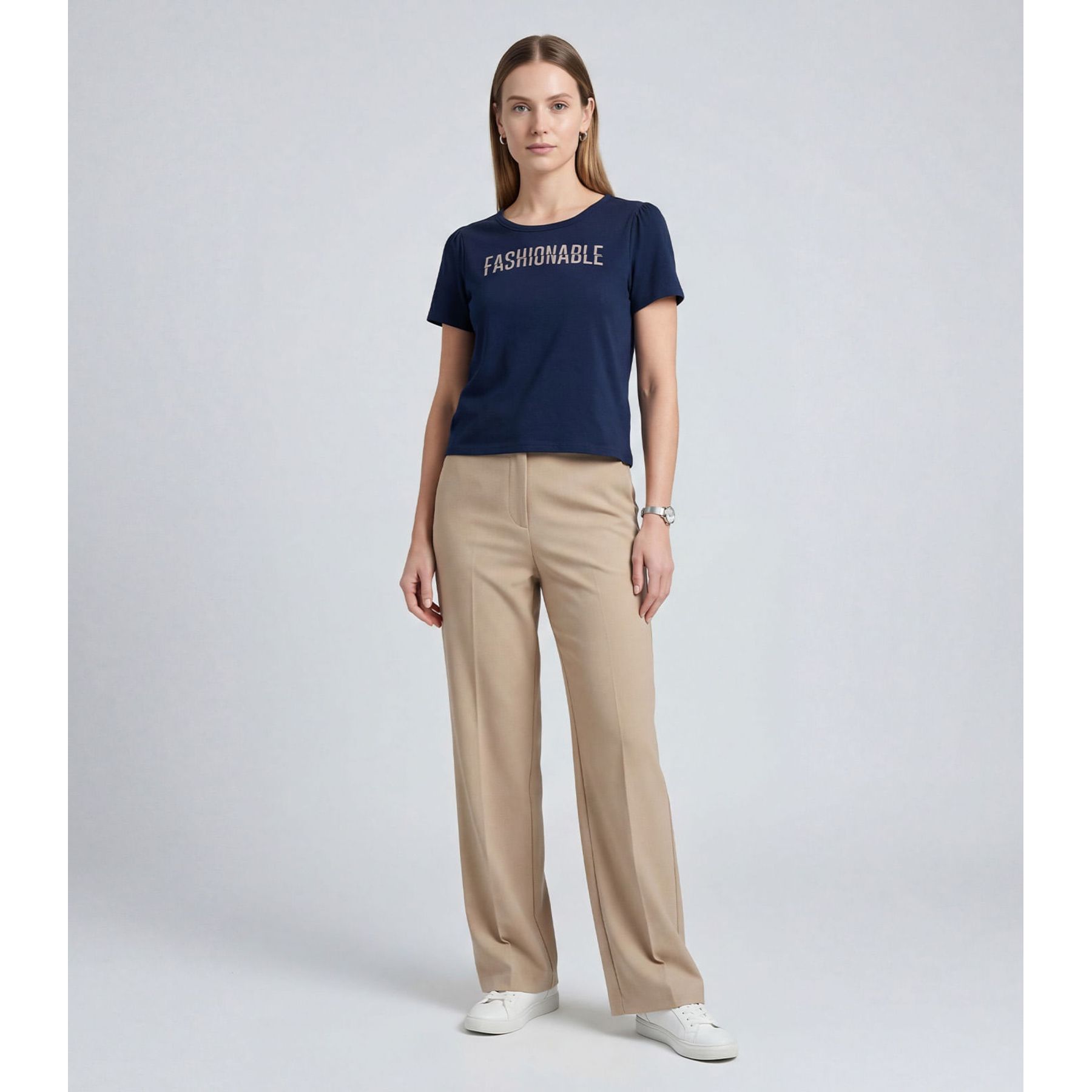 Blusa Feminina Manga Curta Infinita Cor Bege
