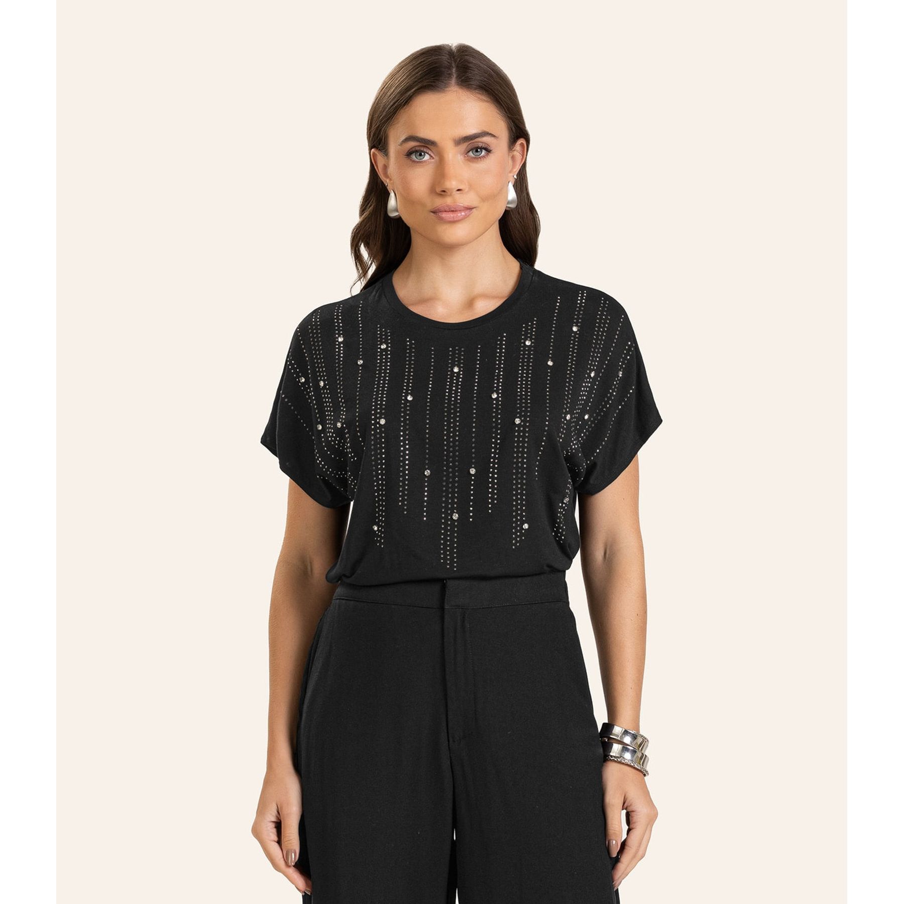 Blusa Feminina Meia Malha Com Estampa Infinita Cor Preto