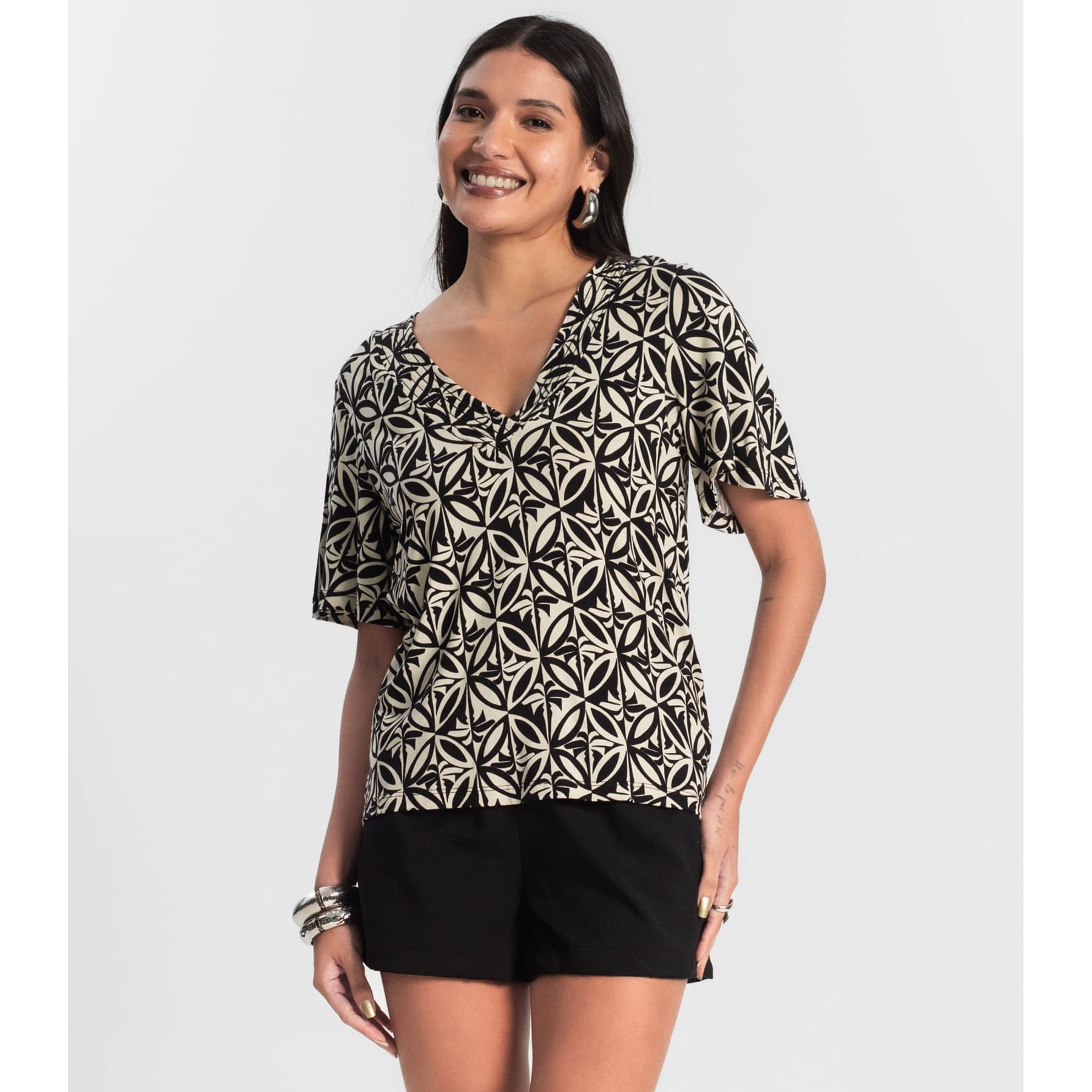 Blusa Manga Curta Feminina Plus Size Secret Glam Preto