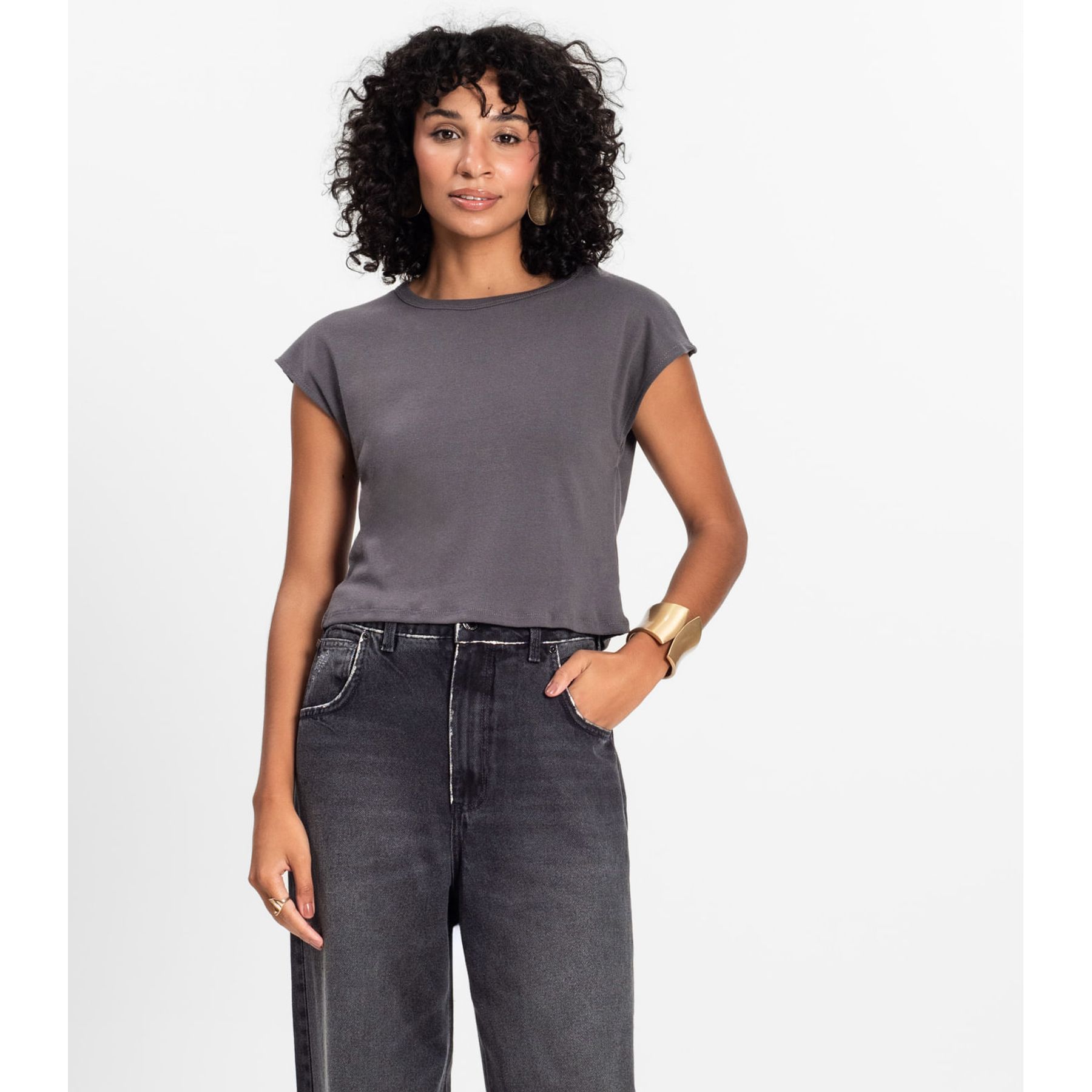 Blusa Feminina Manga Curta em Ribana Endless Preto
