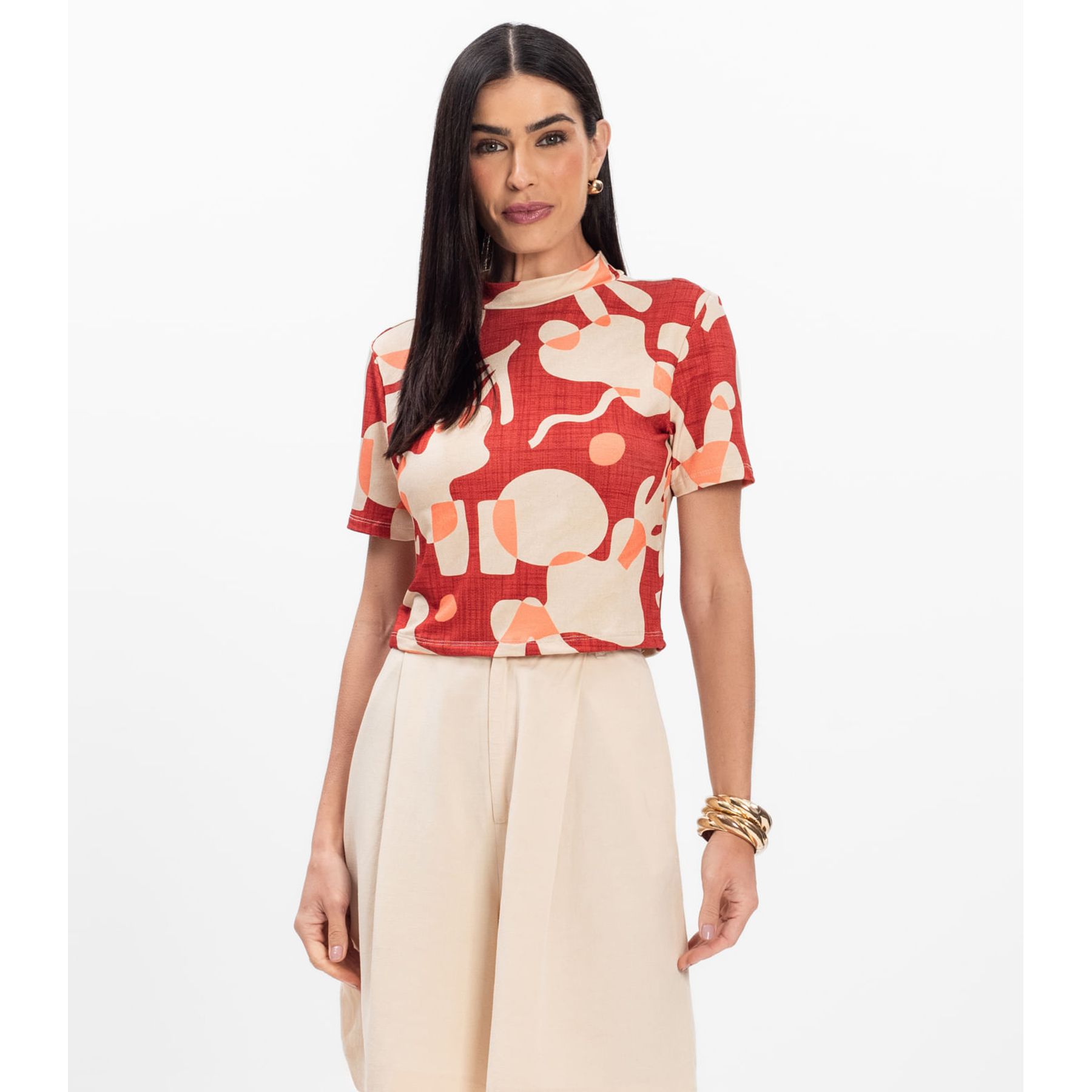 Blusa Feminina Manga Curta Estampada Select Laranja