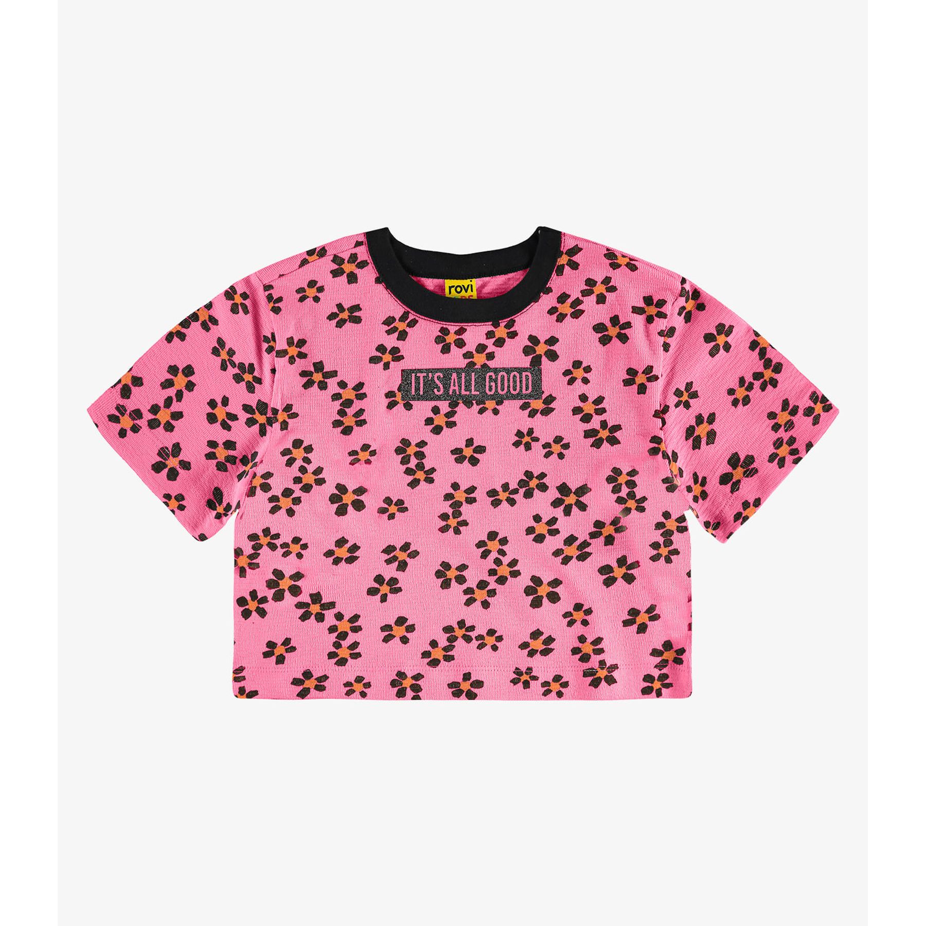 Blusa Infantil Manga Curta com Estampa De Gatinho Rosa - Yeapp