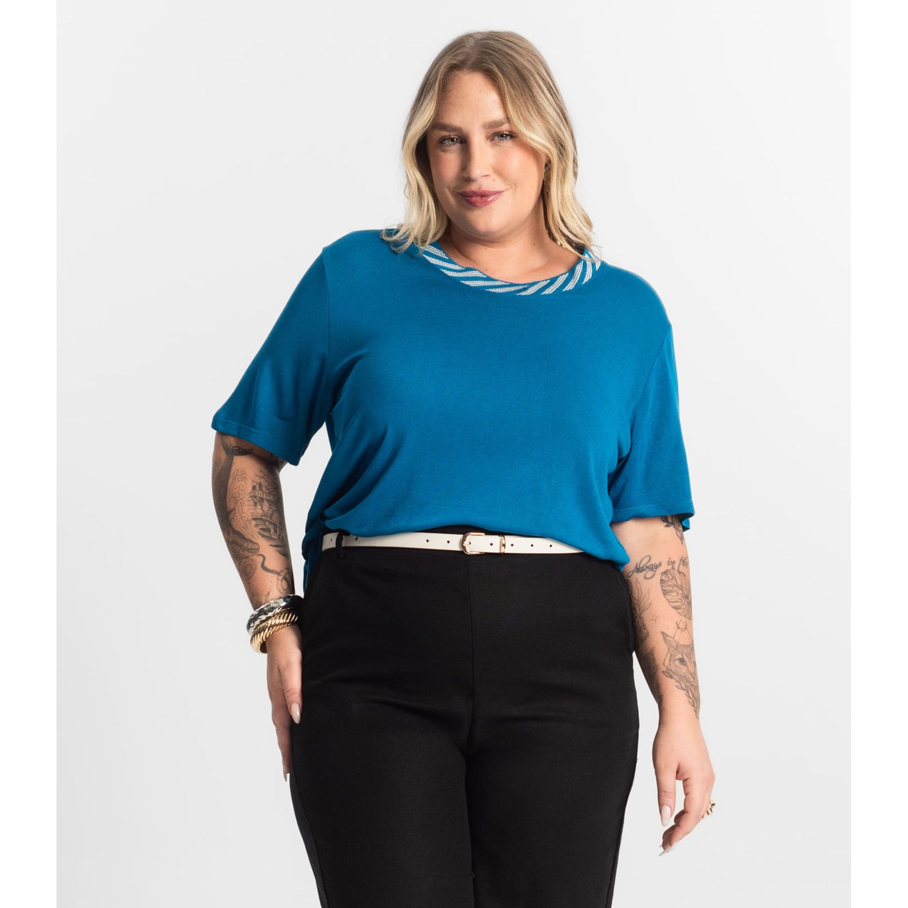Blusa Feminina Manga Curta Plus Size Secret Glam Preto
