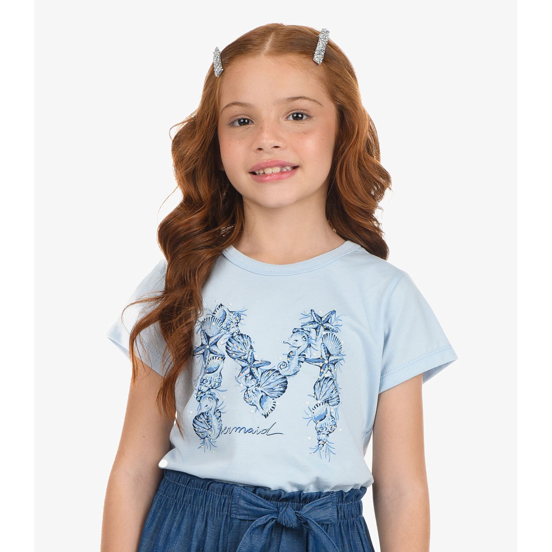Blusa Feminina Manga Curta Infinita Cor Azul
