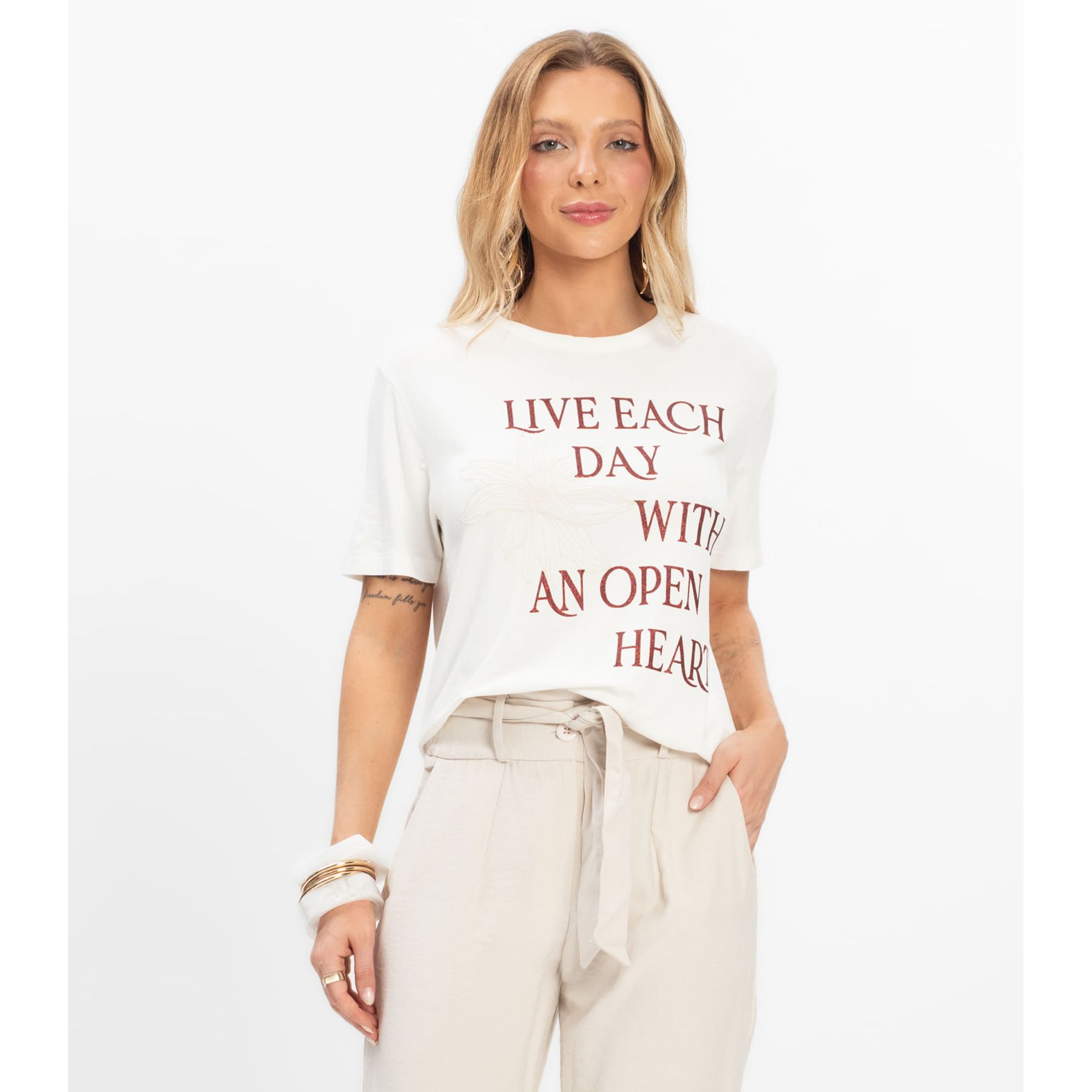 Blusa Feminina Manga Curta Infinita Cor Bege