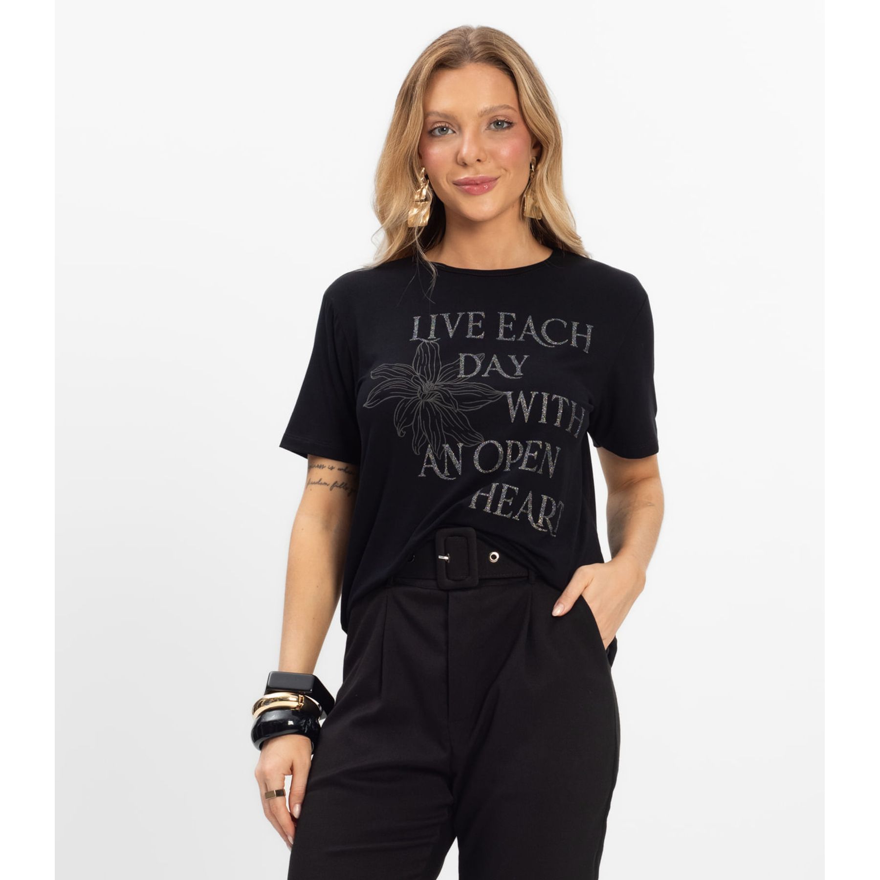 Blusa Feminina Básica Manga Curta Infinita Cor Verde