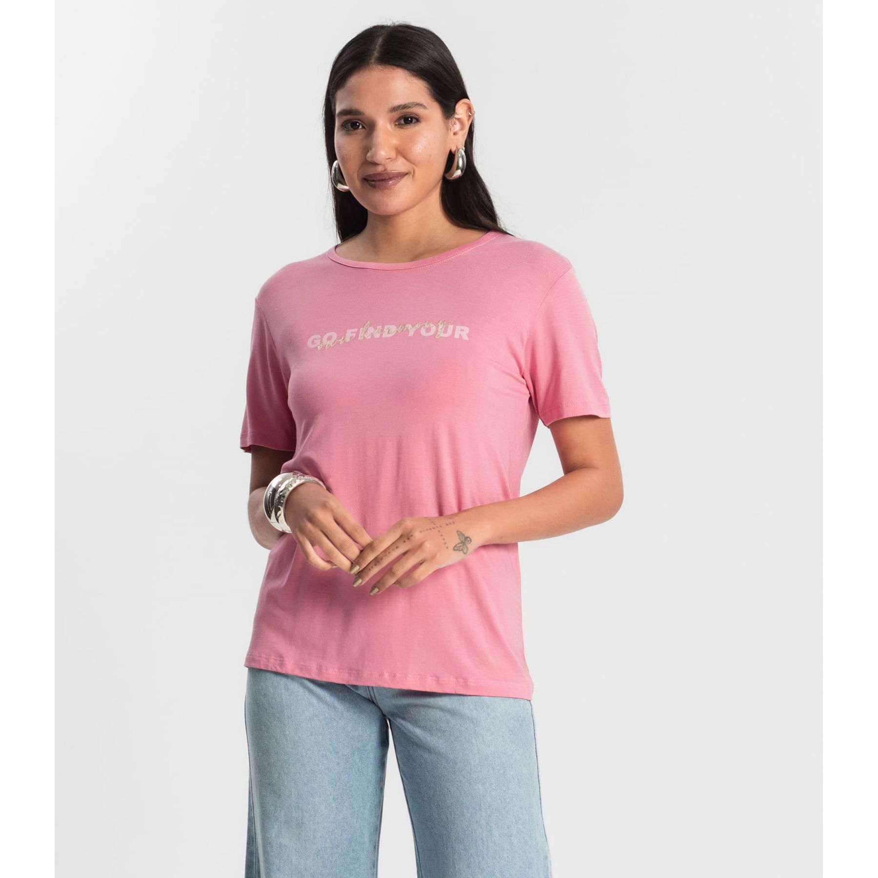 T- Shirt Feminina Manga Curta Endless Bege