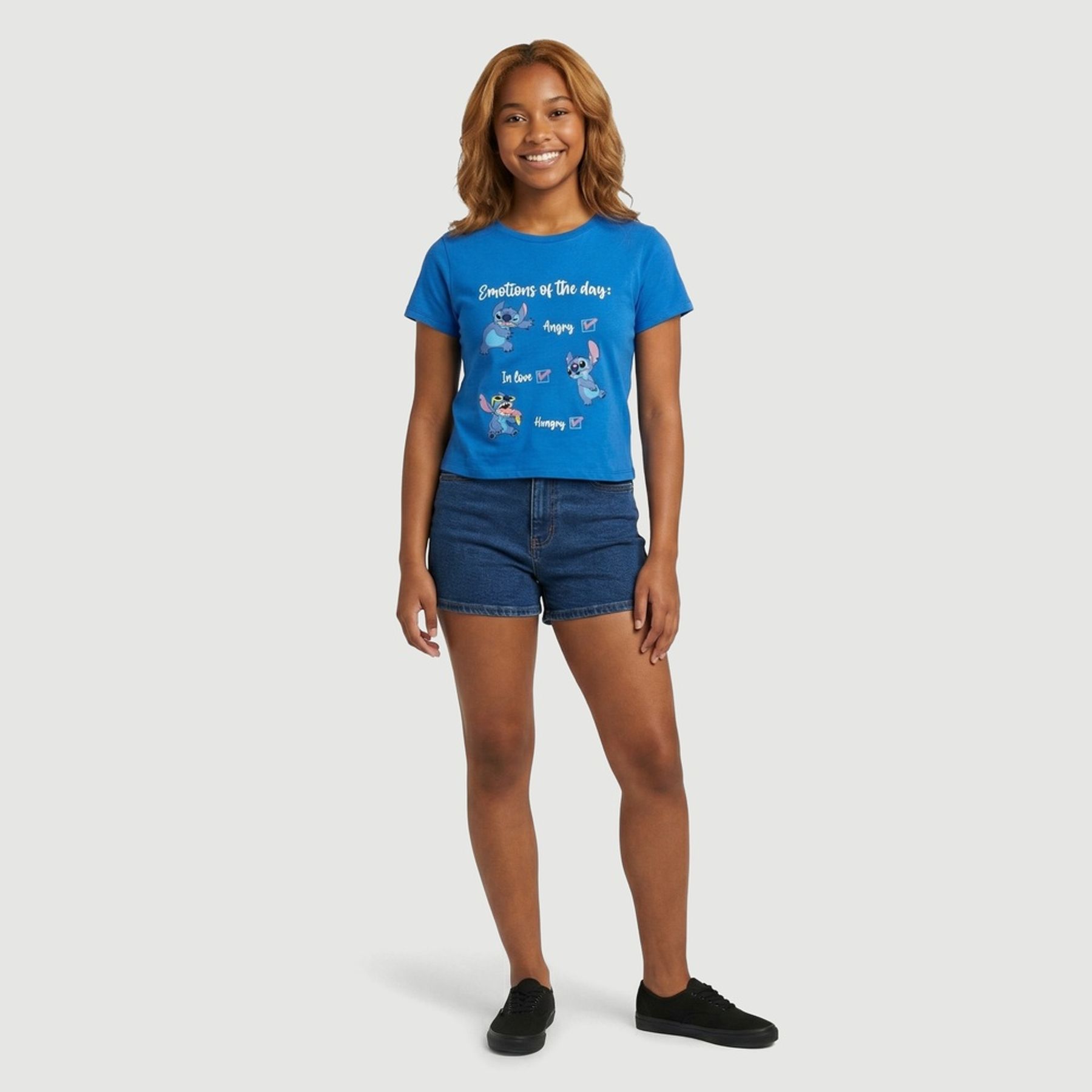 Economia de R$ 18,00Blusa feminina Disney em malha 100% algodão, ideal para compor produções confortáveis com um toque divertido. A estampa frontal centralizada do Stitch (Lilo & Stitch) traz frases em inglês em formato de checklist, valorizando o estilo jovem.