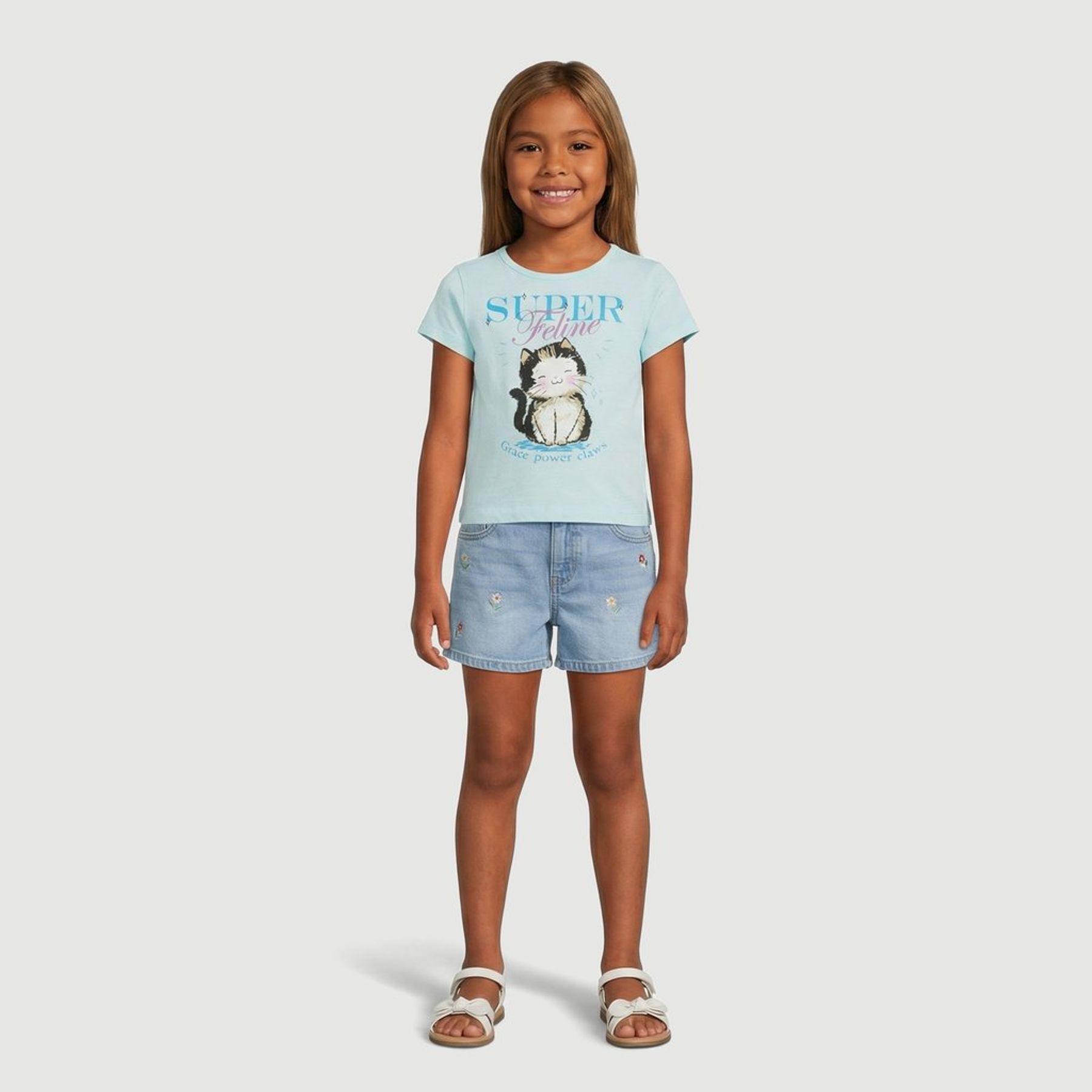 Blusa Infantil Manga Curta Gatinho Azul - Yeapp
