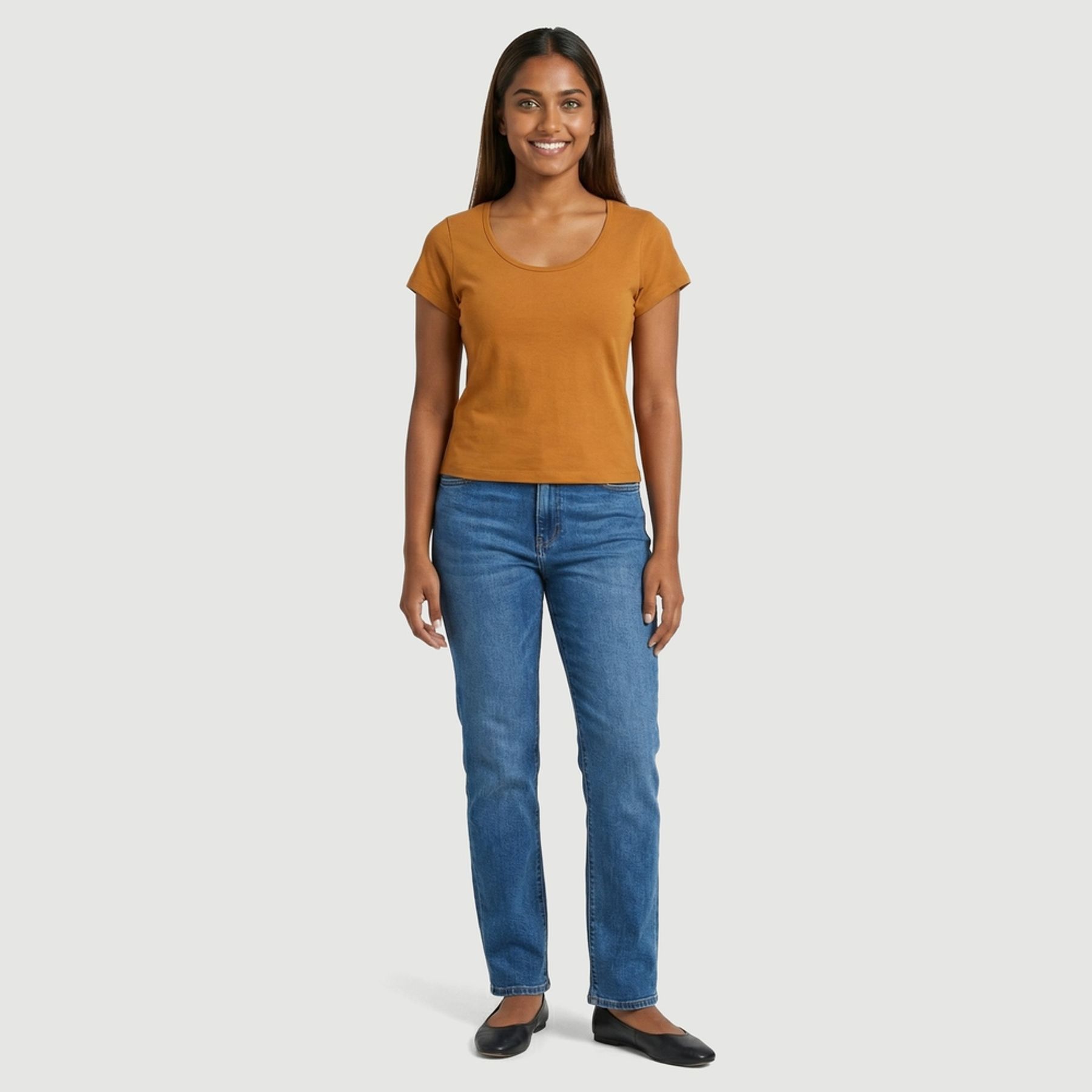 Confeccionada em 100% algodão, oferece toque macio e boa respirabilidade. O modelo tem manga curta, gola canoa com decote amplo e barra simples, com modelagem ajustada para um caimento alinhado.
