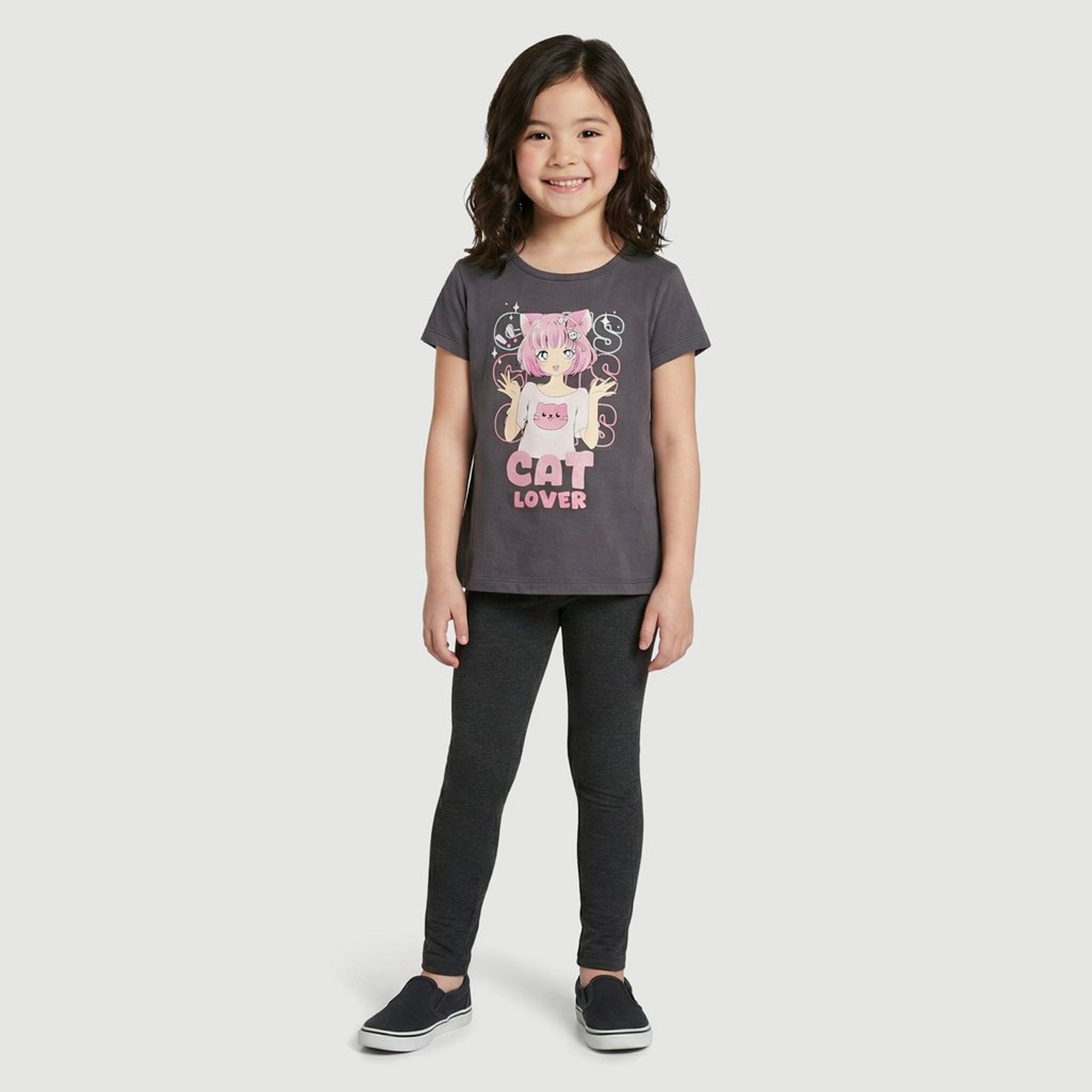 Economia de R$ 2,00A blusa infantil Yeapp em malha 100% algodão é uma escolha confortável para compor looks do cotidiano. Em cor chumbo, possui manga curta e gola redonda, com estampa frontal centralizada de tema gatos: ilustração estilo anime e a frase “CAT LOVER” em destaque. Combina facilmente com jeans, shorts ou saia, criando produções práticas e cheias de personalidade.