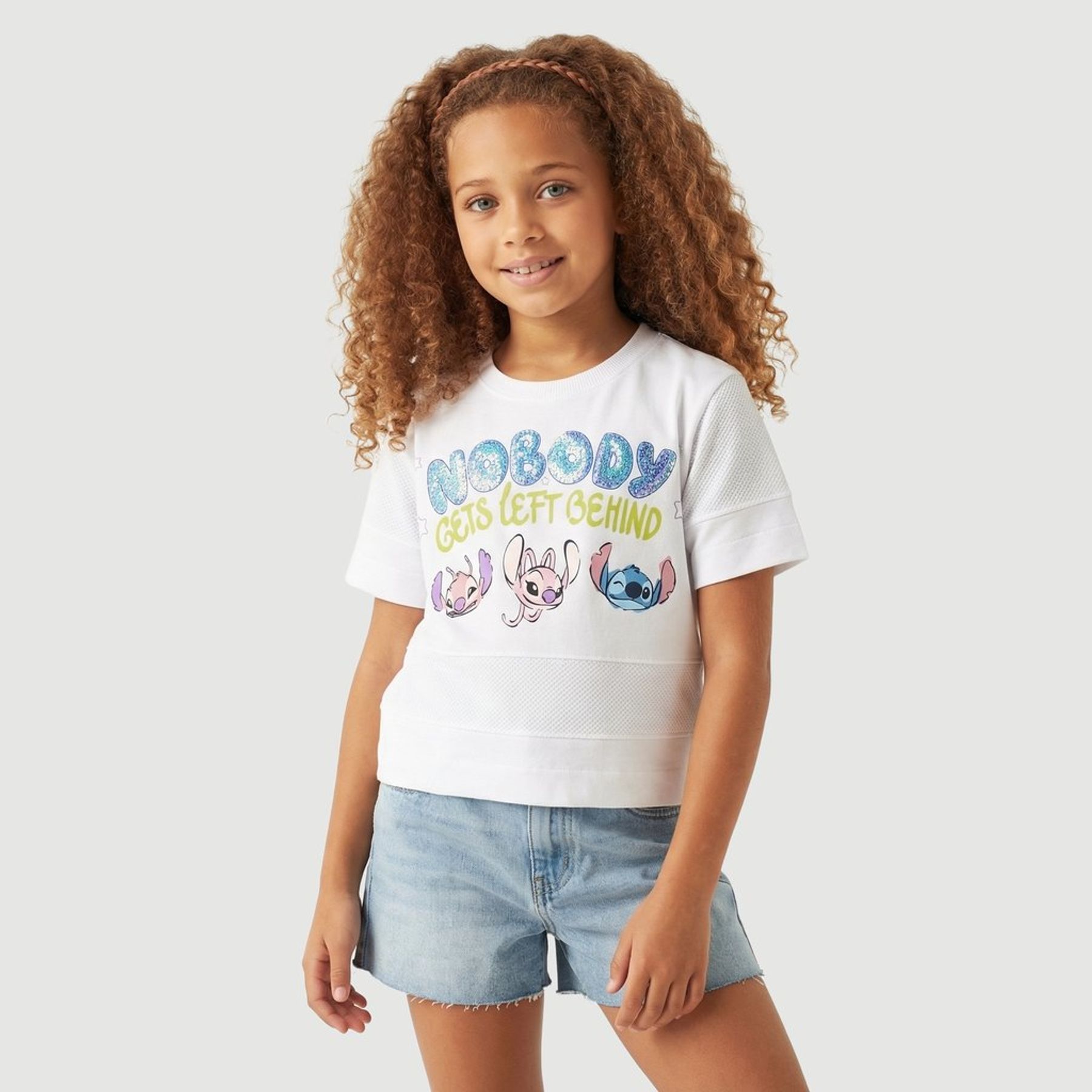 Blusa Feminina Manga Curta Ajustada com Estampa Stitch Creme - Disney