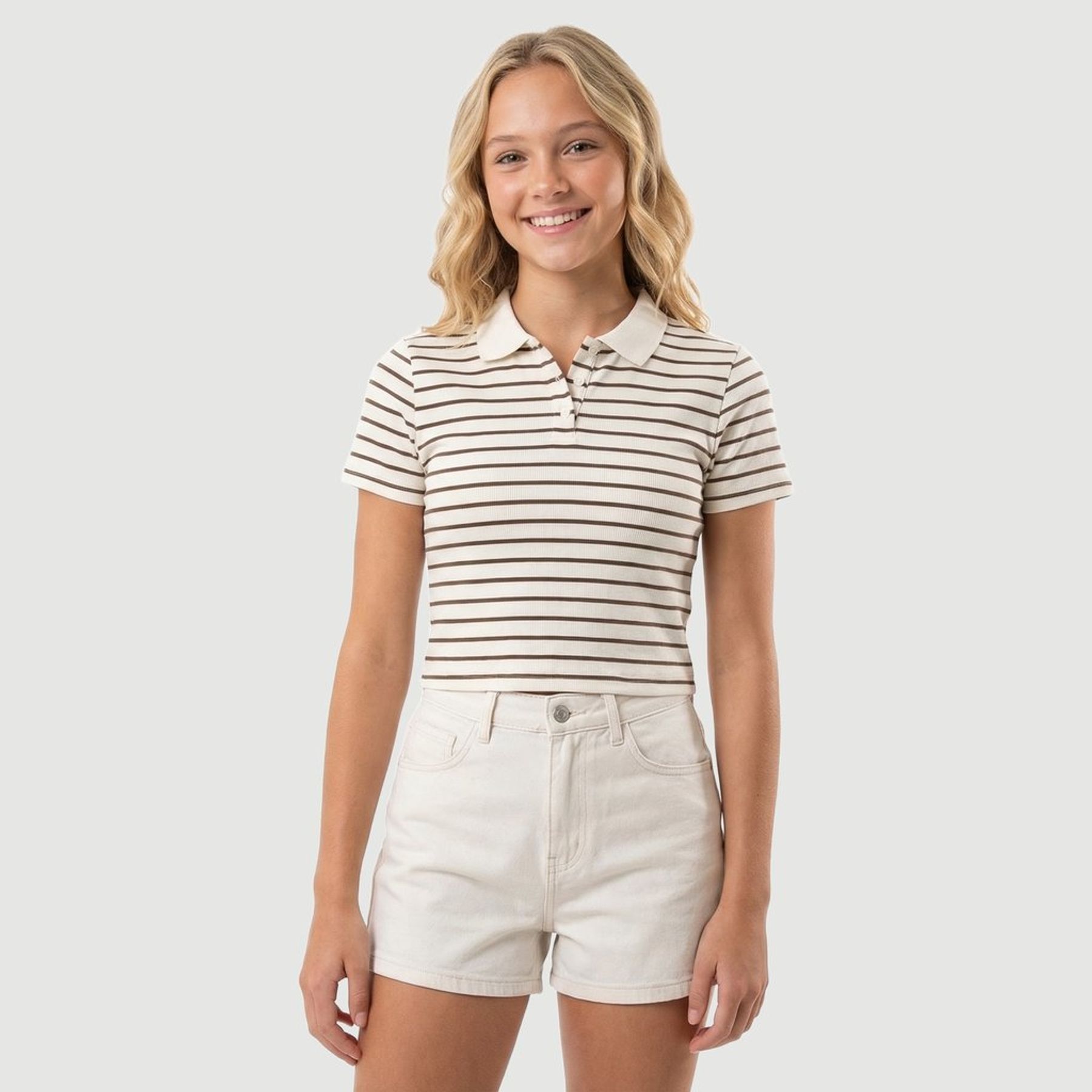 Blusa Viscose Listras manga curta Feminino Endless Bege
