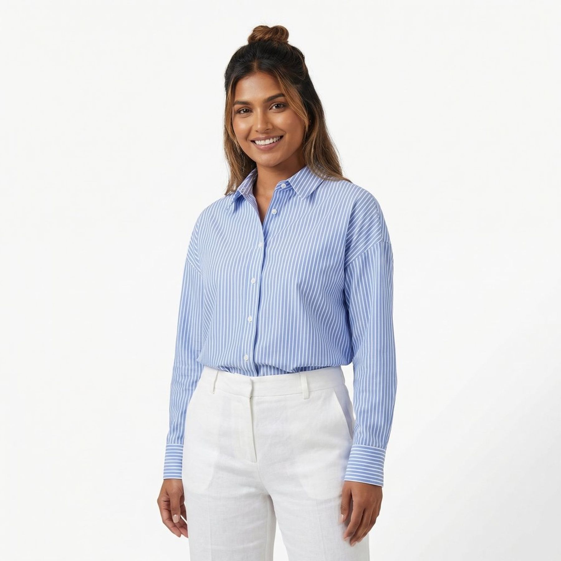 Camisa Feminina Manga Longa com Gola Colarinho Lisa Branca - Urbano