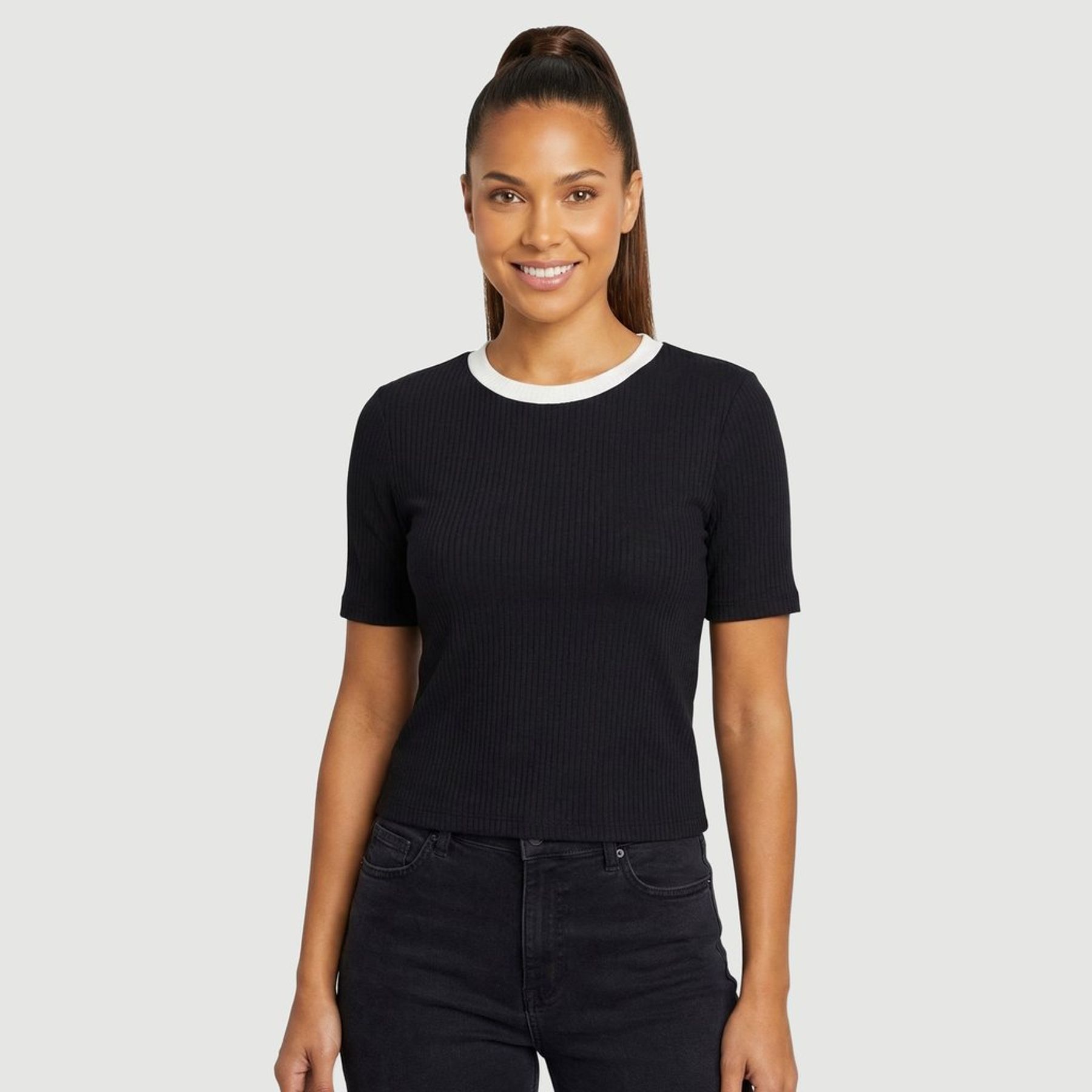 Blusa Cropped Feminina Sem Manga Preta - Viva Basico