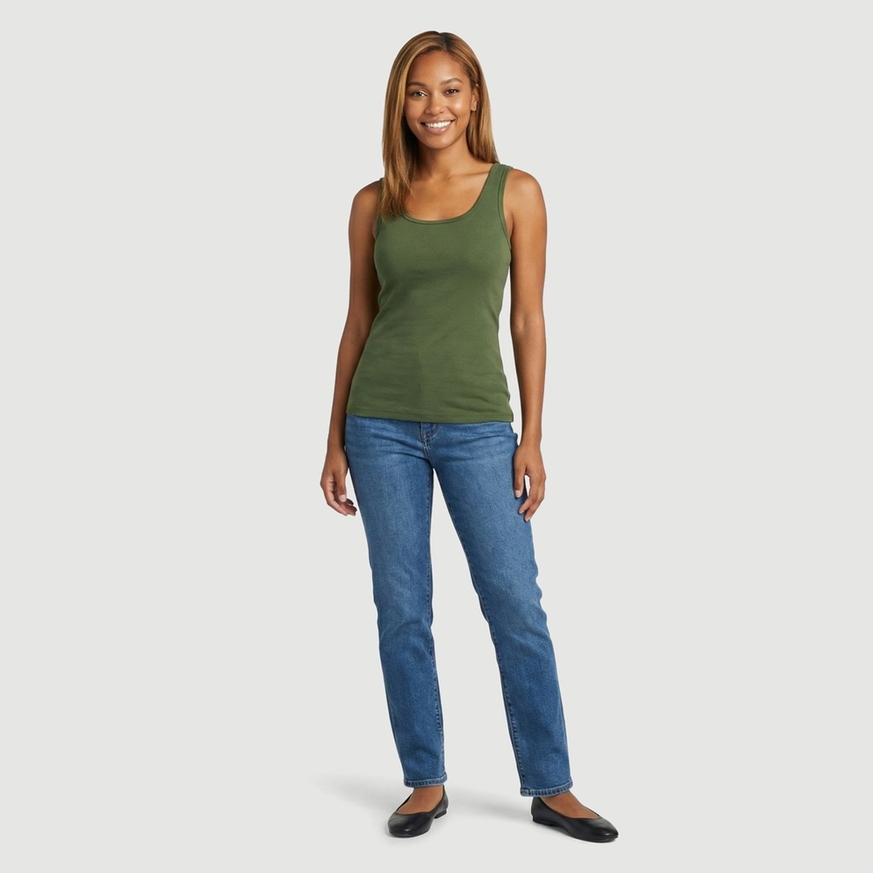 Economia de R$ 2,40A regata feminina Viva Basico é uma peça básica e versátil para compor diferentes combinações. Em verde militar e visual liso, vai bem com jeans, shorts e saias, além de funcionar em sobreposições.