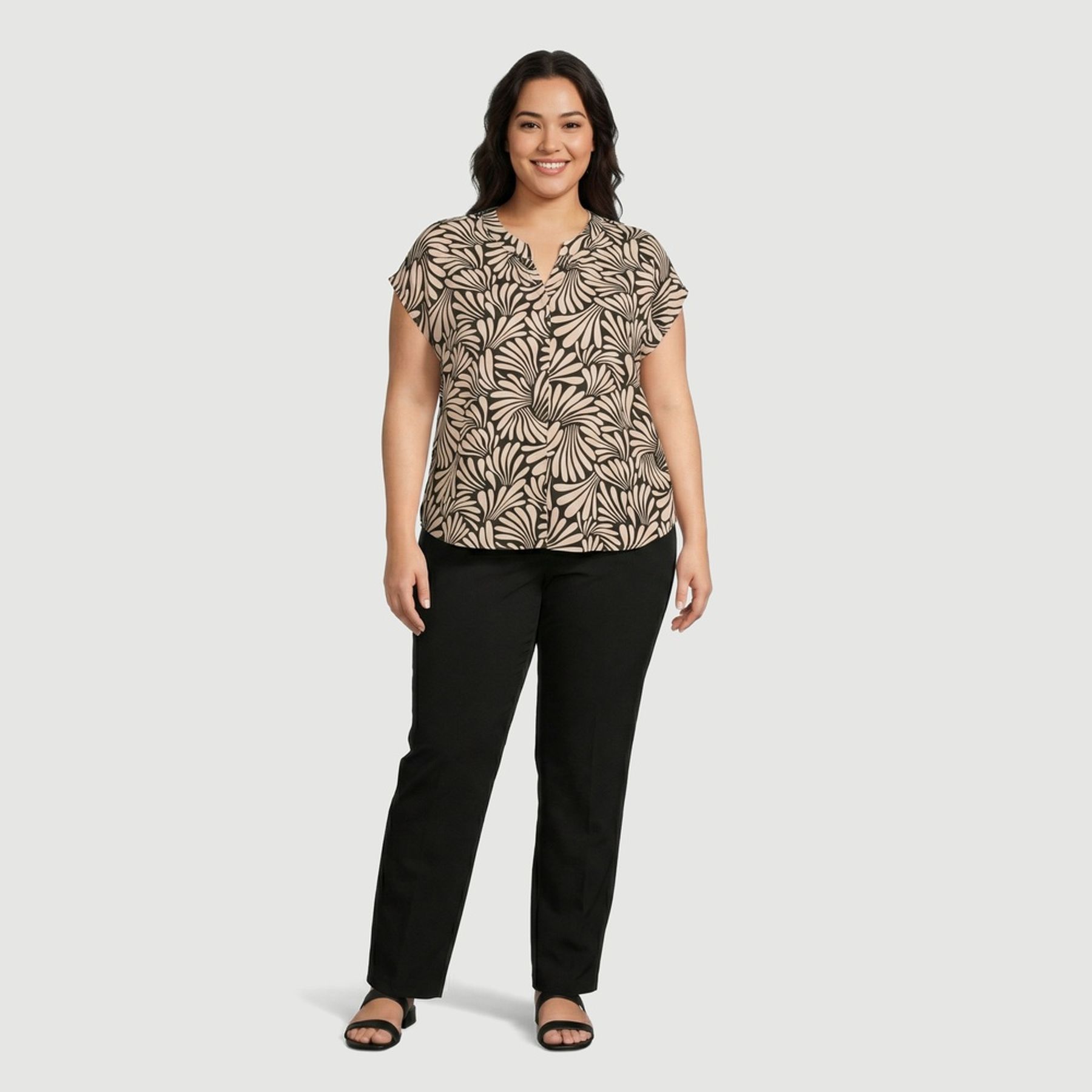 Blusa Manga Curta Feminina Plus Size Secret Glam Bege