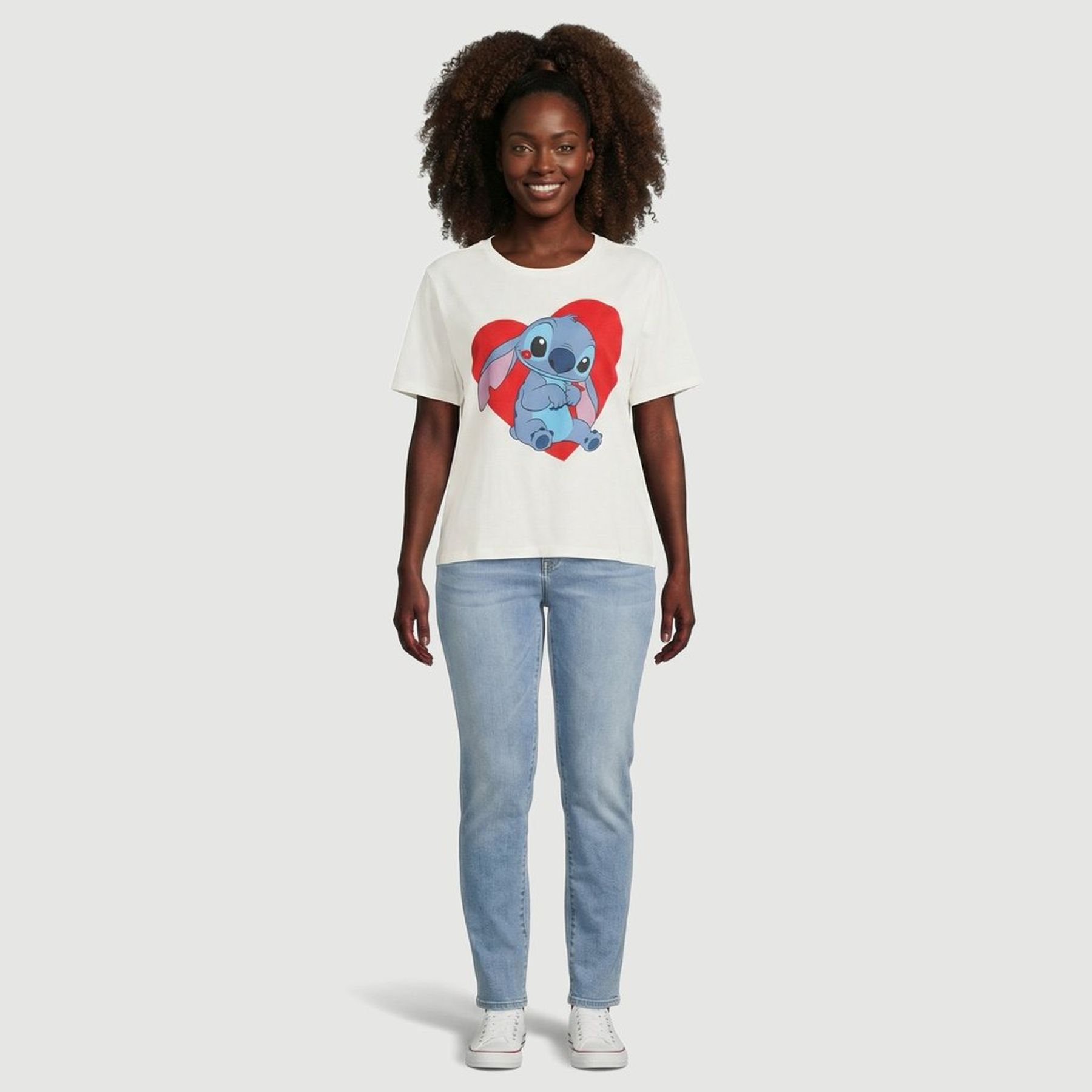 Economia de R$ 6,00Blusa feminina Disney em malha 100% algodão, perfeita para compor produções práticas no cotidiano. A peça traz estampa frontal centralizada do Stitch (Lilo & Stitch) com coração ao fundo, destacando o personagem com um toque divertido. Possui gola redonda, manga curta e modelagem ampla, ideal para combinar com jeans, shorts ou saias, com visual leve e descontraído.