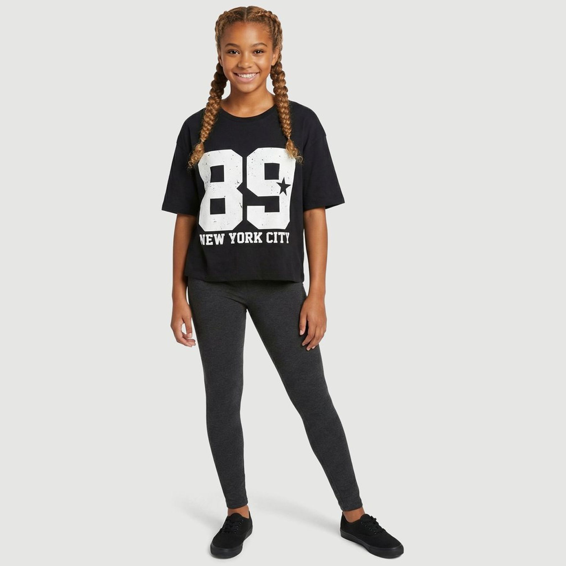 O destaque fica por conta da estampa frontal grande estilo college, com o número 89, estrela e a frase “New York City” em branco com efeito respingado, trazendo personalidade para combinações com jeans, shorts ou leggings. Na cor preta, é versátil e fácil de combinar.