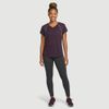 O modelo tem manga curta e modelagem raglan para mais liberdade de movimentos, além de decote em V que valoriza o caimento. Os detalhes em filete branco nas linhas do raglan adicionam contraste discreto e a barra levemente arredondada finaliza o visual.